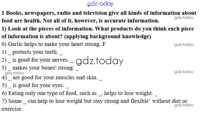 На страницах сайта gdz.today вы найдете учебный и вспомогательный материал, направленный на улучшения знаний школьной программы. ГДЗ - онлайн мир знаний lesson 5 Решение к Unit 5. A healthy living guide 1 Учебнику по Английскому языку для 8 класса Кузовлев, Лапа Просвещение 2015