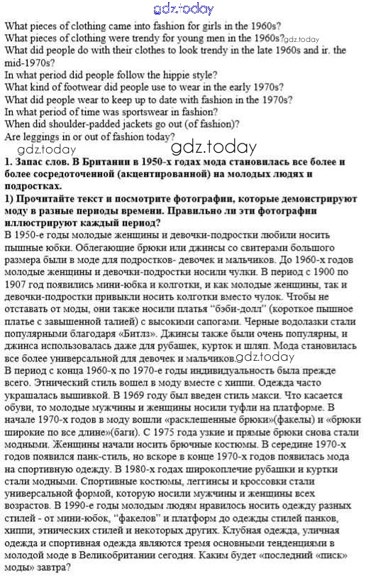 На страницах сайта gdz.today вы найдете учебный и вспомогательный материал, направленный на улучшения знаний школьной программы. ГДЗ - онлайн мир знаний lesson 1 Решение к Unit 6. Changing times, changing styles 1 Учебнику по Английскому языку для 8 класса Кузовлев, Лапа Просвещение 2015