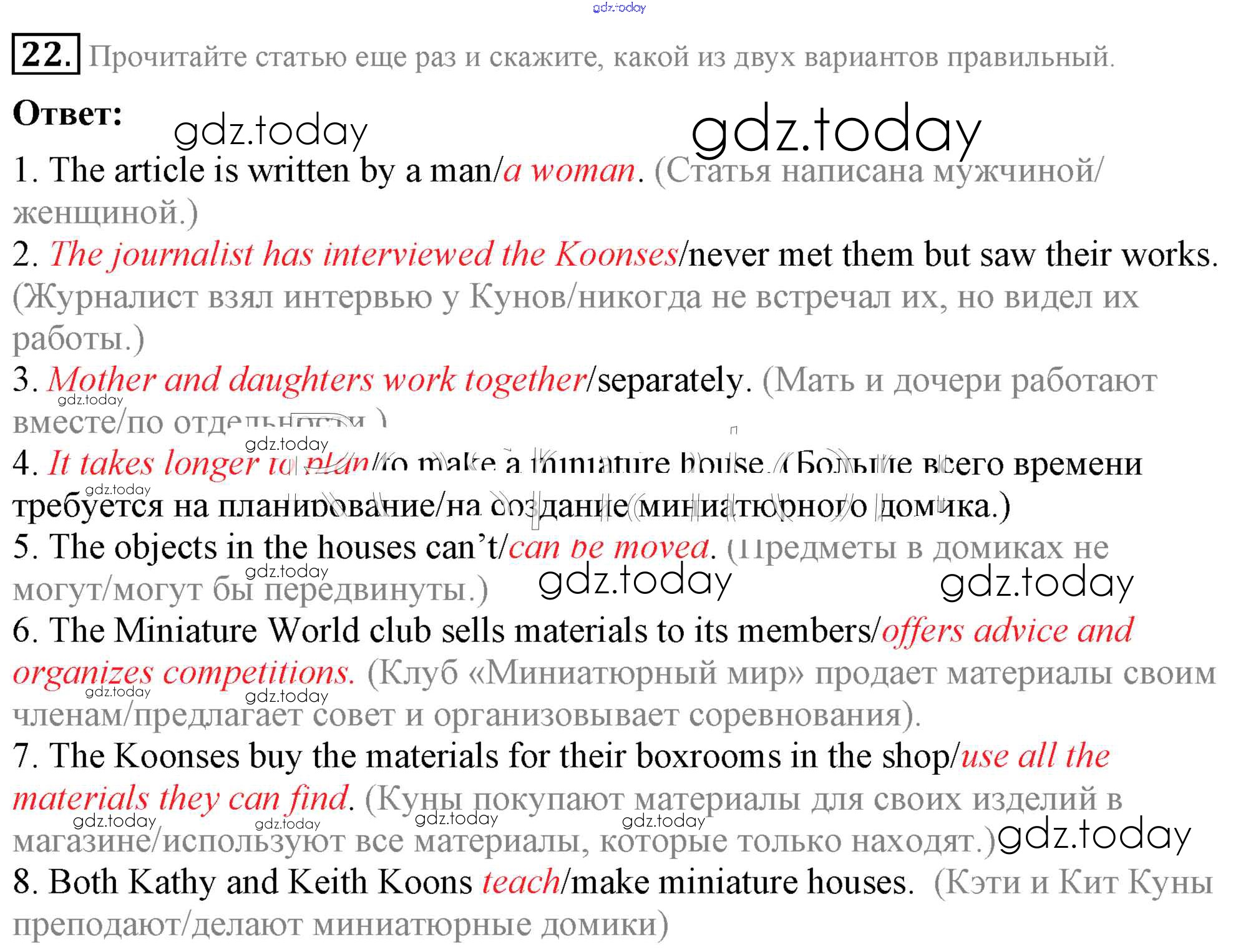 Ответы к Решение к Unit 1 22 Учебнику по Английскому языку для 8 класса Афанасьева, Михеева Углубленный уровень Просвещение 2014