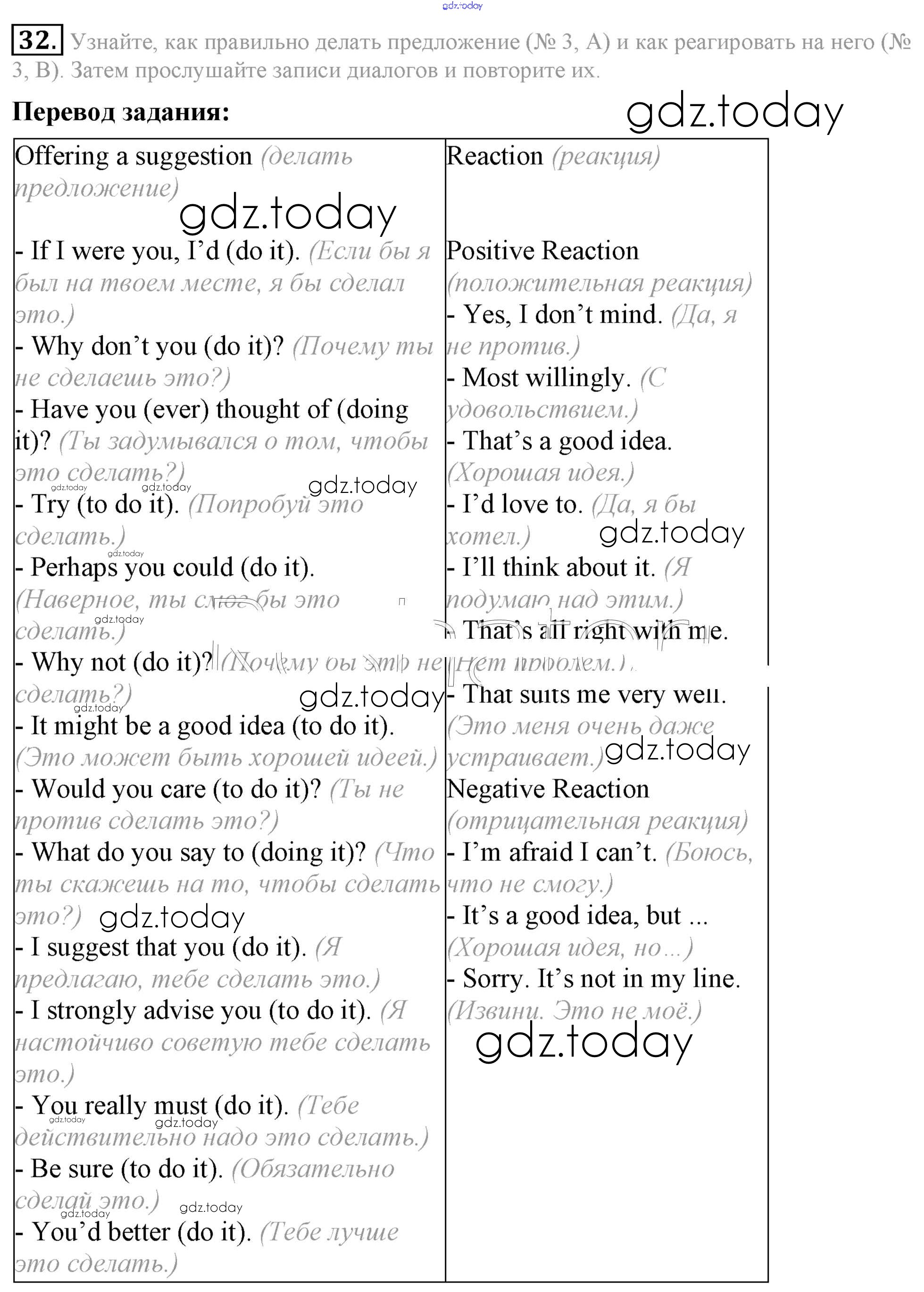 На страницах сайта gdz.today вы найдете учебный и вспомогательный материал, направленный на улучшения знаний школьной программы. ГДЗ - онлайн мир знаний Решение к Unit 1 32 Учебнику по Английскому языку для 8 класса Афанасьева, Михеева Углубленный уровень Просвещение 2014