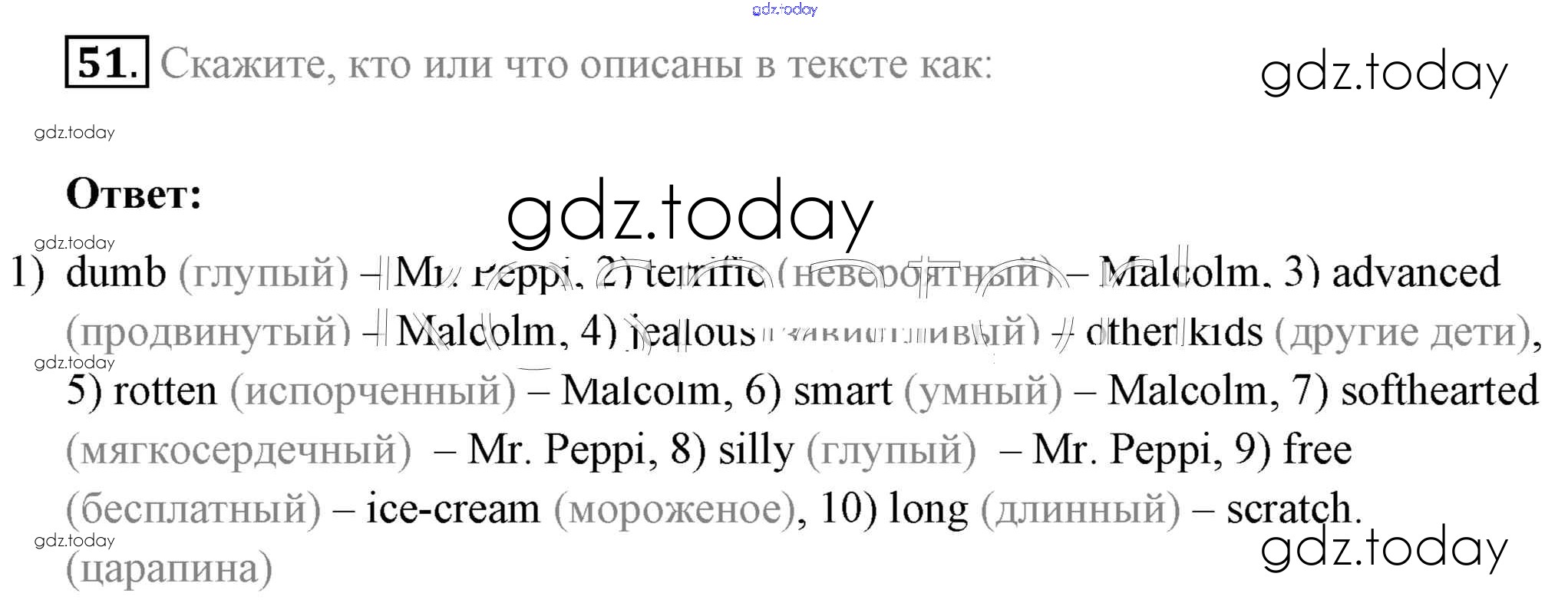 На страницах сайта gdz.today вы найдете учебный и вспомогательный материал, направленный на улучшения знаний школьной программы. ГДЗ - онлайн мир знаний Решение к Unit 1 51 Учебнику по Английскому языку для 8 класса Афанасьева, Михеева Углубленный уровень Просвещение 2014