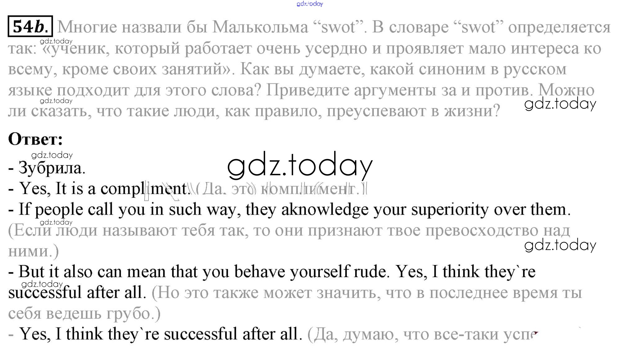 На страницах сайта gdz.today вы найдете учебный и вспомогательный материал, направленный на улучшения знаний школьной программы. ГДЗ - онлайн мир знаний Решение к Unit 1 54b Учебнику по Английскому языку для 8 класса Афанасьева, Михеева Углубленный уровень Просвещение 2014