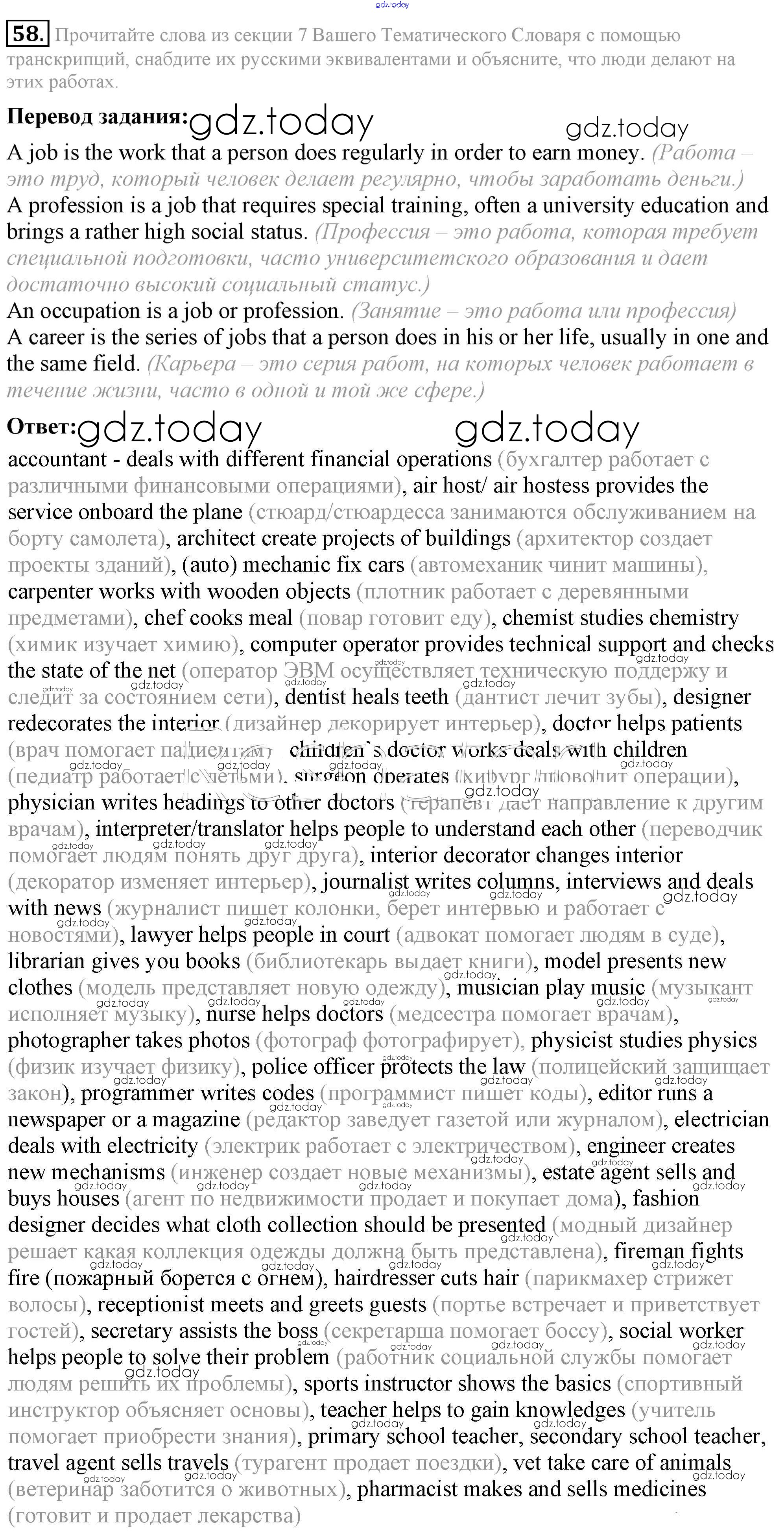 На страницах сайта gdz.today вы найдете учебный и вспомогательный материал, направленный на улучшения знаний школьной программы. ГДЗ - онлайн мир знаний Решение к Unit 1 58 Учебнику по Английскому языку для 8 класса Афанасьева, Михеева Углубленный уровень Просвещение 2014