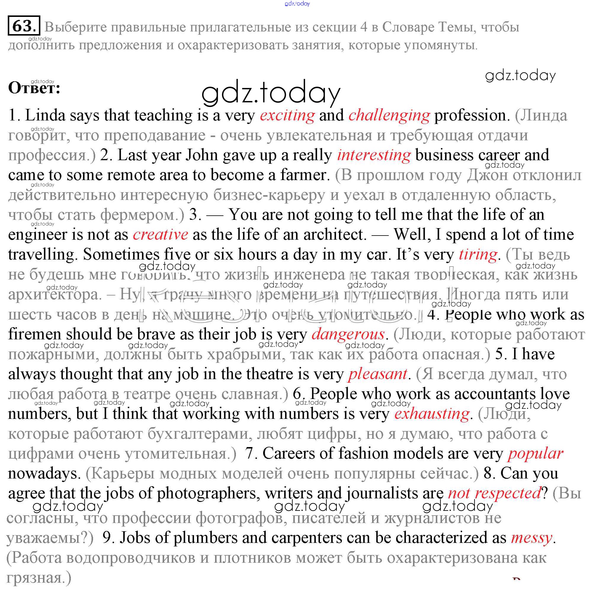 На страницах сайта gdz.today вы найдете учебный и вспомогательный материал, направленный на улучшения знаний школьной программы. ГДЗ - онлайн мир знаний Решение к Unit 1 63 Учебнику по Английскому языку для 8 класса Афанасьева, Михеева Углубленный уровень Просвещение 2014