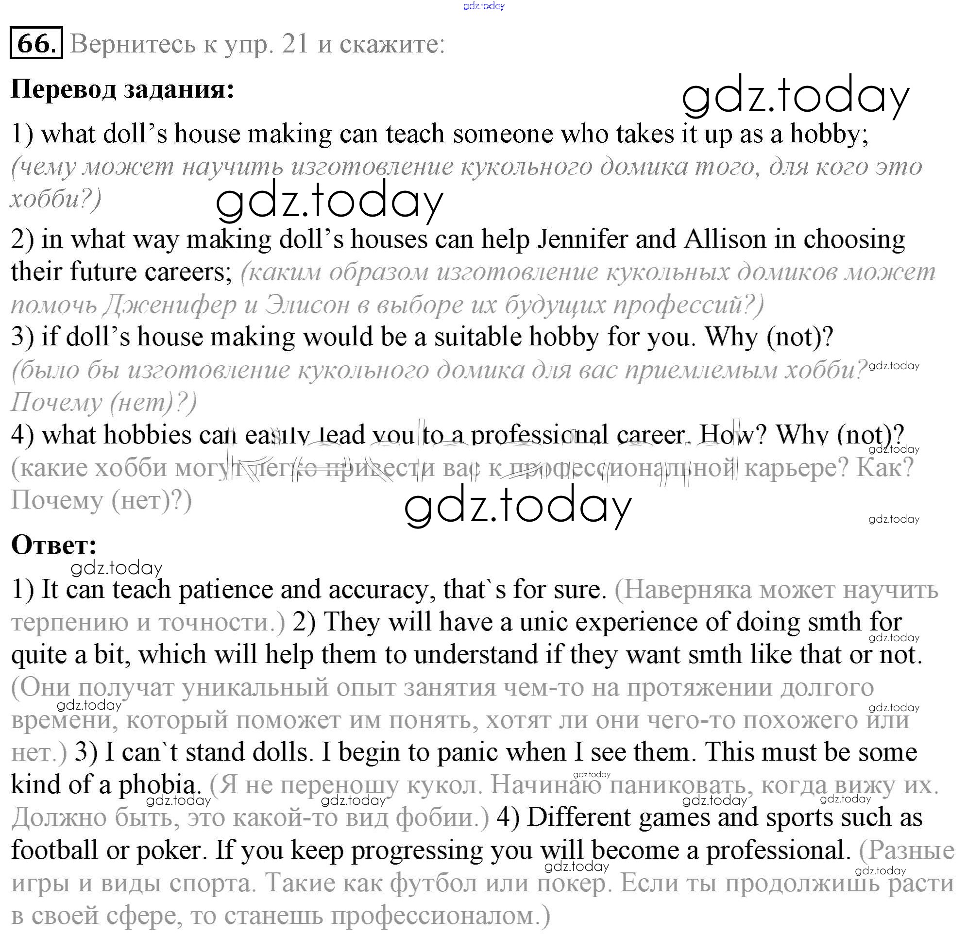 На страницах сайта gdz.today вы найдете учебный и вспомогательный материал, направленный на улучшения знаний школьной программы. ГДЗ - онлайн мир знаний Решение к Unit 1 66 Учебнику по Английскому языку для 8 класса Афанасьева, Михеева Углубленный уровень Просвещение 2014