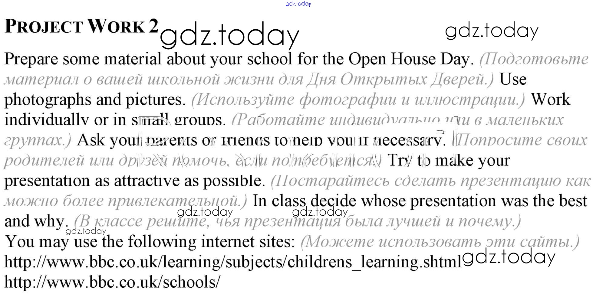 На страницах сайта gdz.today вы найдете учебный и вспомогательный материал, направленный на улучшения знаний школьной программы. ГДЗ - онлайн мир знаний Решение к Unit 2 Project Work Учебнику по Английскому языку для 8 класса Афанасьева, Михеева Углубленный уровень Просвещение 2014