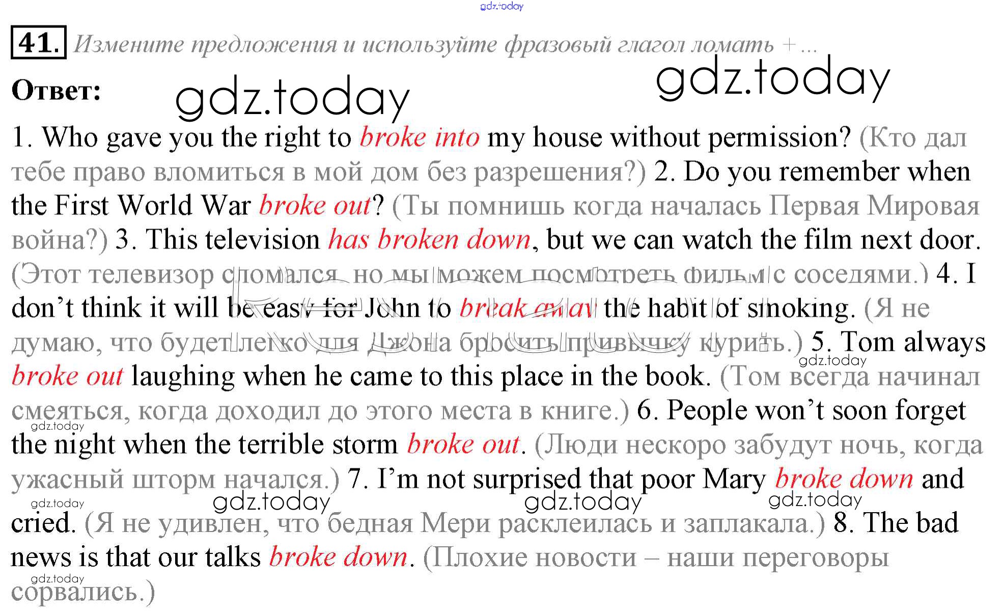 На страницах сайта gdz.today вы найдете учебный и вспомогательный материал, направленный на улучшения знаний школьной программы. ГДЗ - онлайн мир знаний Решение к Unit 2 41 Учебнику по Английскому языку для 8 класса Афанасьева, Михеева Углубленный уровень Просвещение 2014