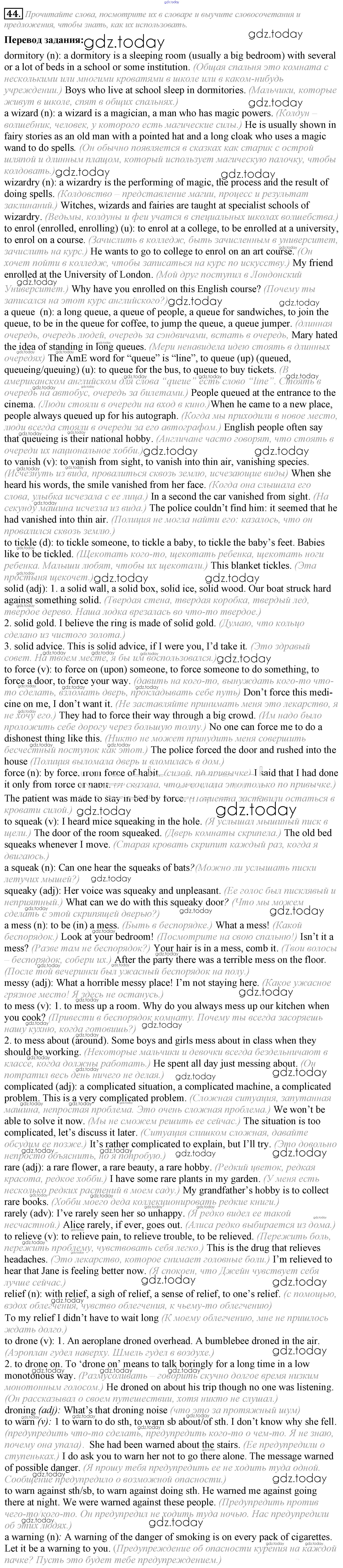 На страницах сайта gdz.today вы найдете учебный и вспомогательный материал, направленный на улучшения знаний школьной программы. ГДЗ - онлайн мир знаний Решение к Unit 2 44 Учебнику по Английскому языку для 8 класса Афанасьева, Михеева Углубленный уровень Просвещение 2014