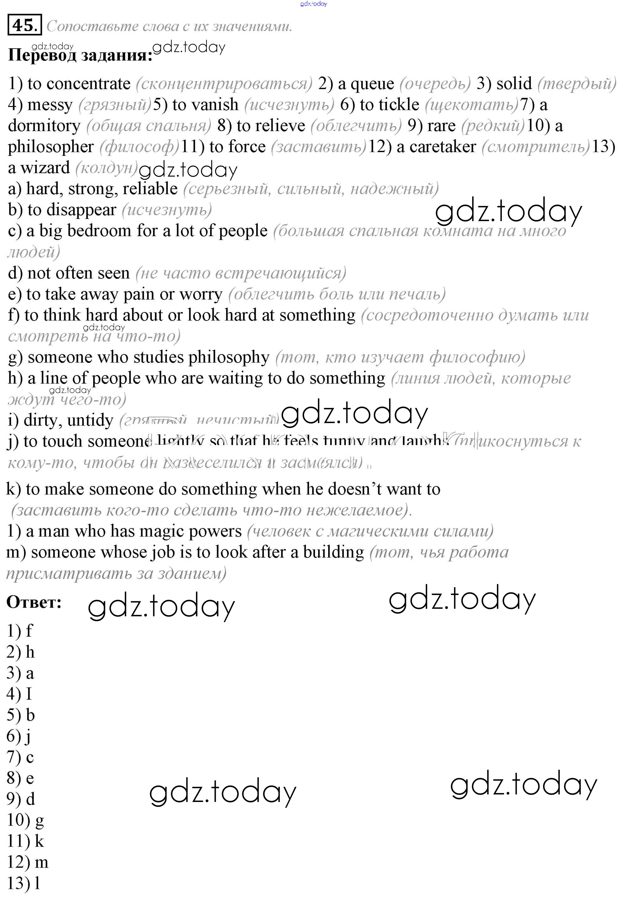 На страницах сайта gdz.today вы найдете учебный и вспомогательный материал, направленный на улучшения знаний школьной программы. ГДЗ - онлайн мир знаний Решение к Unit 2 45 Учебнику по Английскому языку для 8 класса Афанасьева, Михеева Углубленный уровень Просвещение 2014