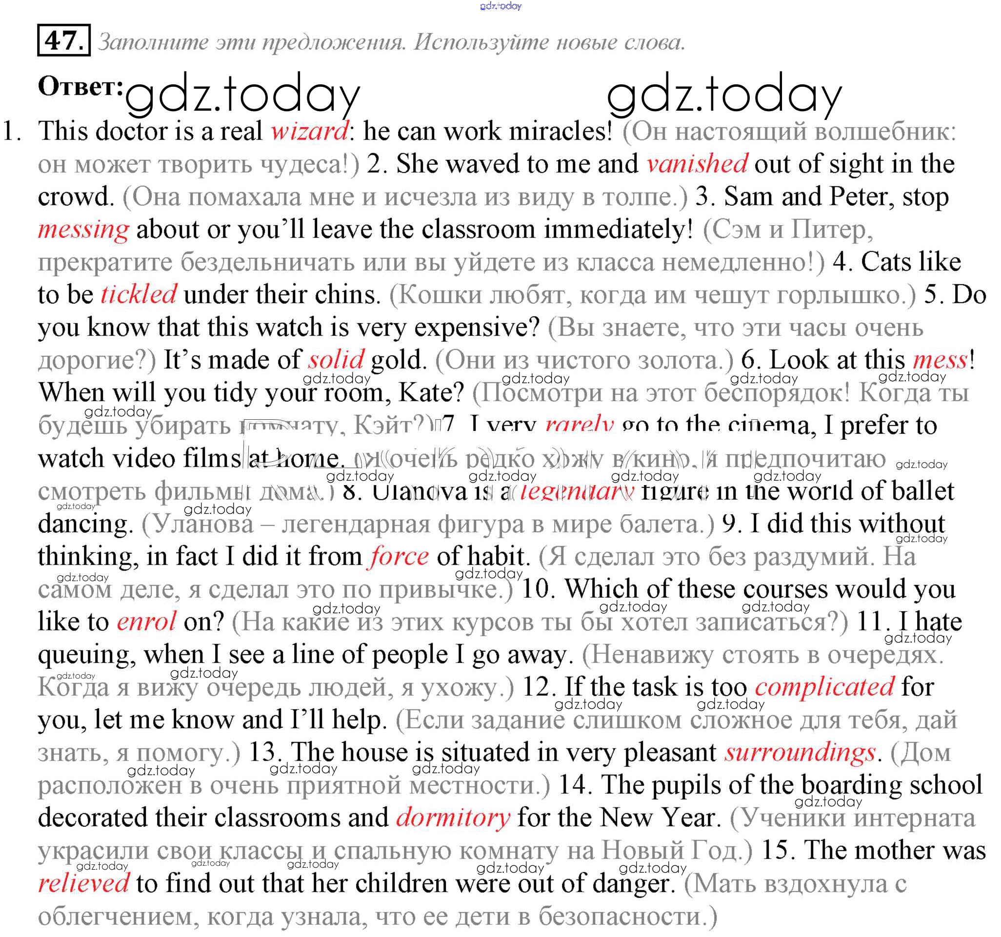 На страницах сайта gdz.today вы найдете учебный и вспомогательный материал, направленный на улучшения знаний школьной программы. ГДЗ - онлайн мир знаний Решение к Unit 2 47 Учебнику по Английскому языку для 8 класса Афанасьева, Михеева Углубленный уровень Просвещение 2014