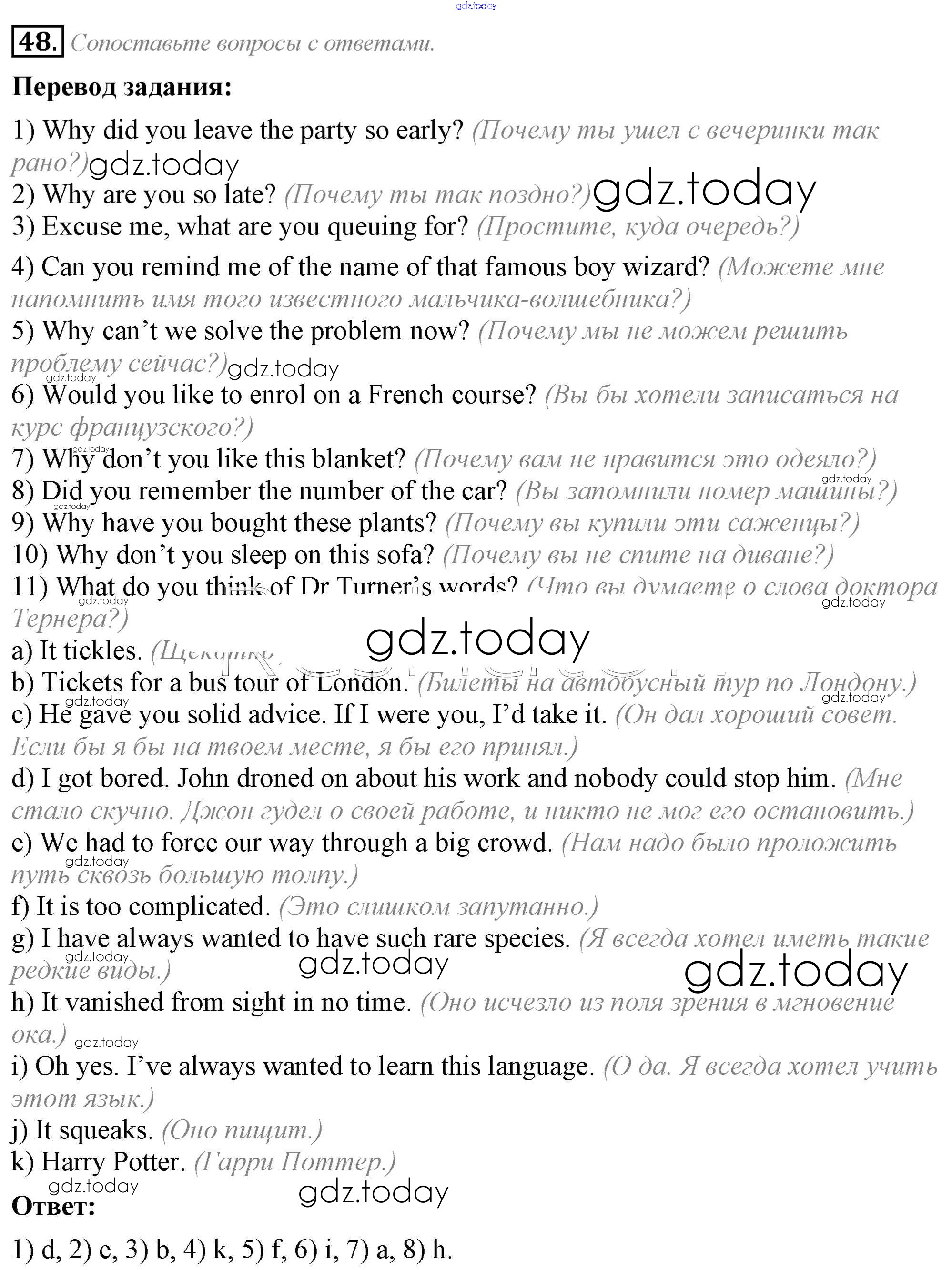 На страницах сайта gdz.today вы найдете учебный и вспомогательный материал, направленный на улучшения знаний школьной программы. ГДЗ - онлайн мир знаний Решение к Unit 2 48 Учебнику по Английскому языку для 8 класса Афанасьева, Михеева Углубленный уровень Просвещение 2014
