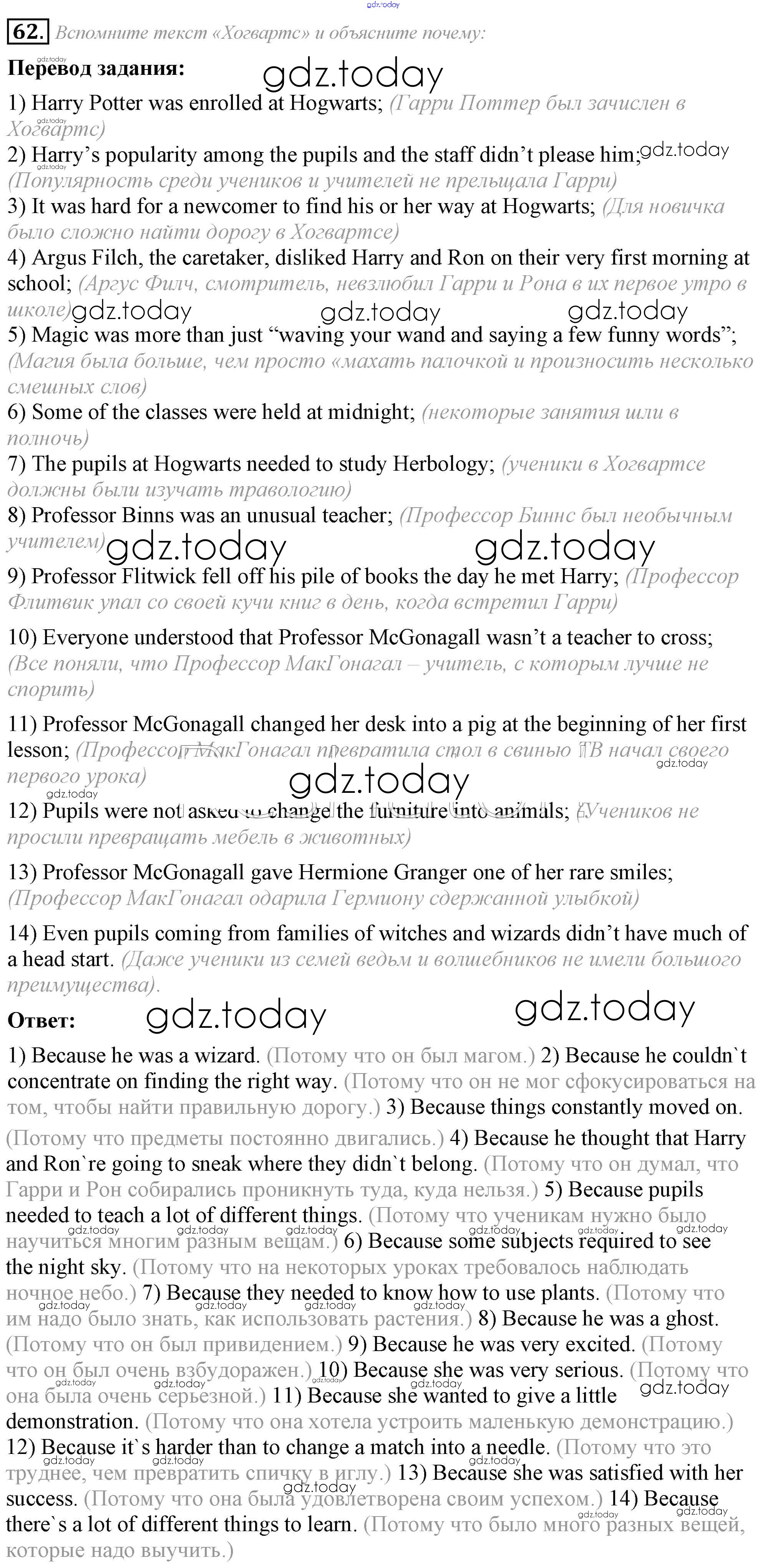 На страницах сайта gdz.today вы найдете учебный и вспомогательный материал, направленный на улучшения знаний школьной программы. ГДЗ - онлайн мир знаний Решение к Unit 2 62 Учебнику по Английскому языку для 8 класса Афанасьева, Михеева Углубленный уровень Просвещение 2014