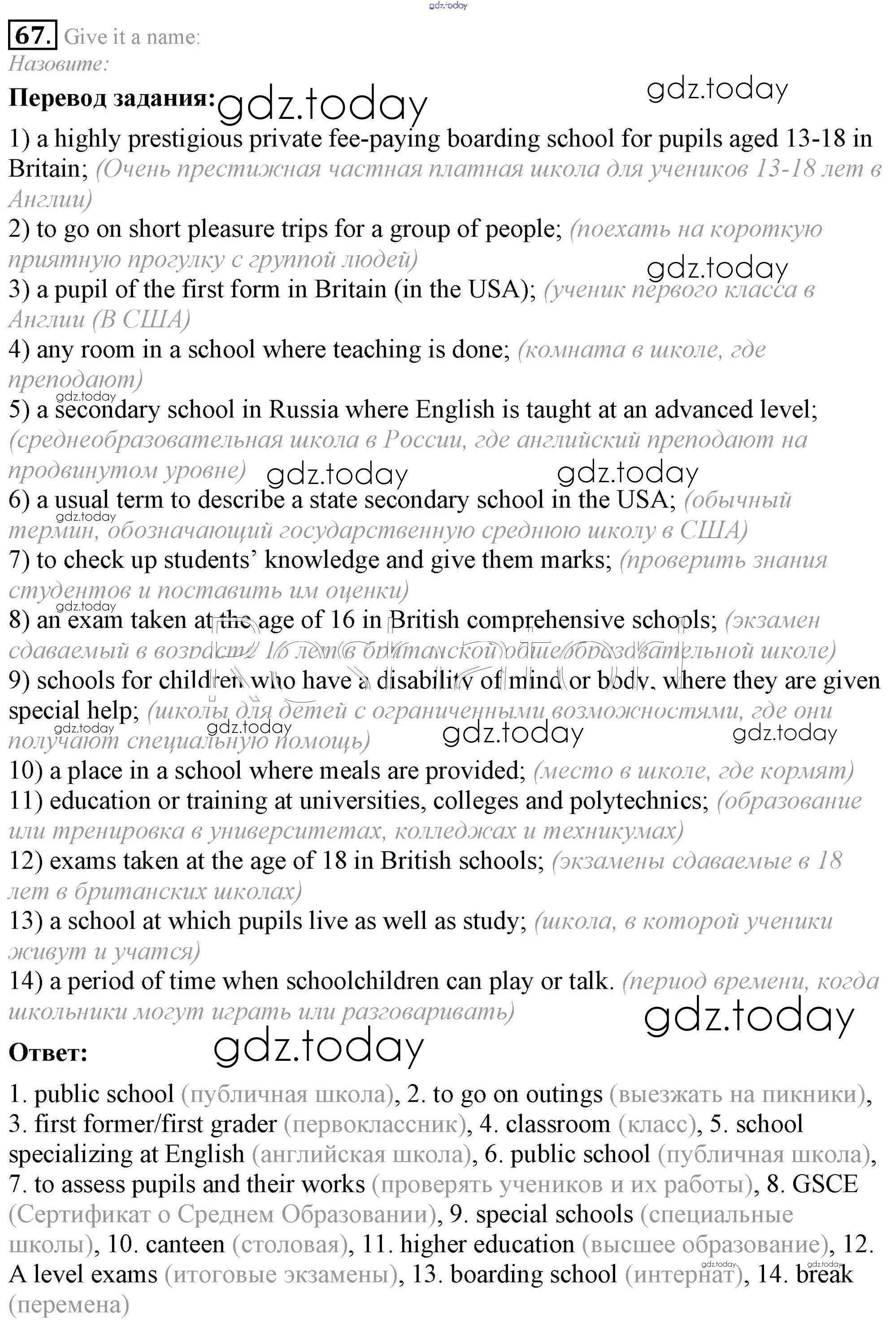 На страницах сайта gdz.today вы найдете учебный и вспомогательный материал, направленный на улучшения знаний школьной программы. ГДЗ - онлайн мир знаний Решение к Unit 2 67 Учебнику по Английскому языку для 8 класса Афанасьева, Михеева Углубленный уровень Просвещение 2014