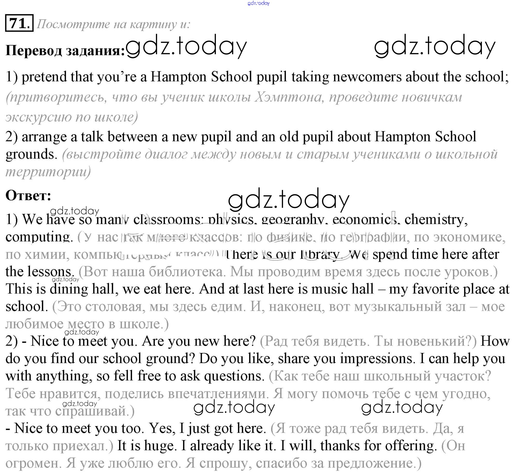 На страницах сайта gdz.today вы найдете учебный и вспомогательный материал, направленный на улучшения знаний школьной программы. ГДЗ - онлайн мир знаний Решение к Unit 2 71 Учебнику по Английскому языку для 8 класса Афанасьева, Михеева Углубленный уровень Просвещение 2014