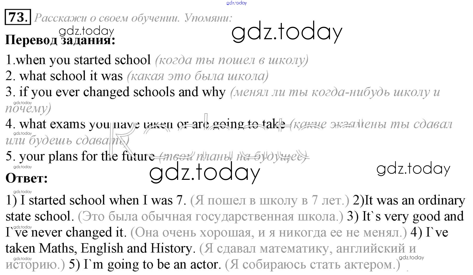 На страницах сайта gdz.today вы найдете учебный и вспомогательный материал, направленный на улучшения знаний школьной программы. ГДЗ - онлайн мир знаний Решение к Unit 2 73 Учебнику по Английскому языку для 8 класса Афанасьева, Михеева Углубленный уровень Просвещение 2014
