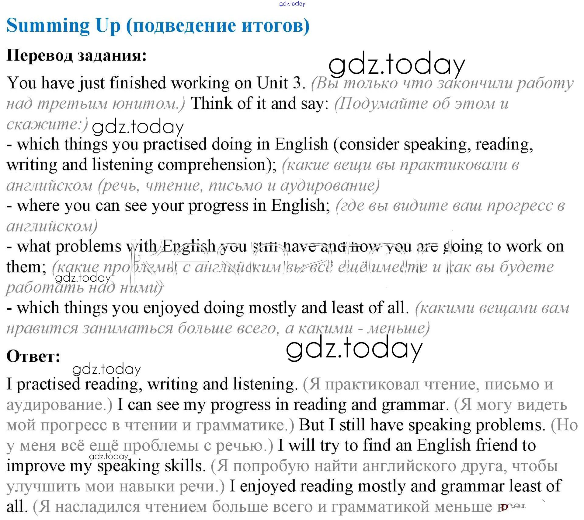 Ответы к Решение к Unit 3 Summing Up Учебнику по Английскому языку для 8 класса Афанасьева, Михеева Углубленный уровень Просвещение 2014