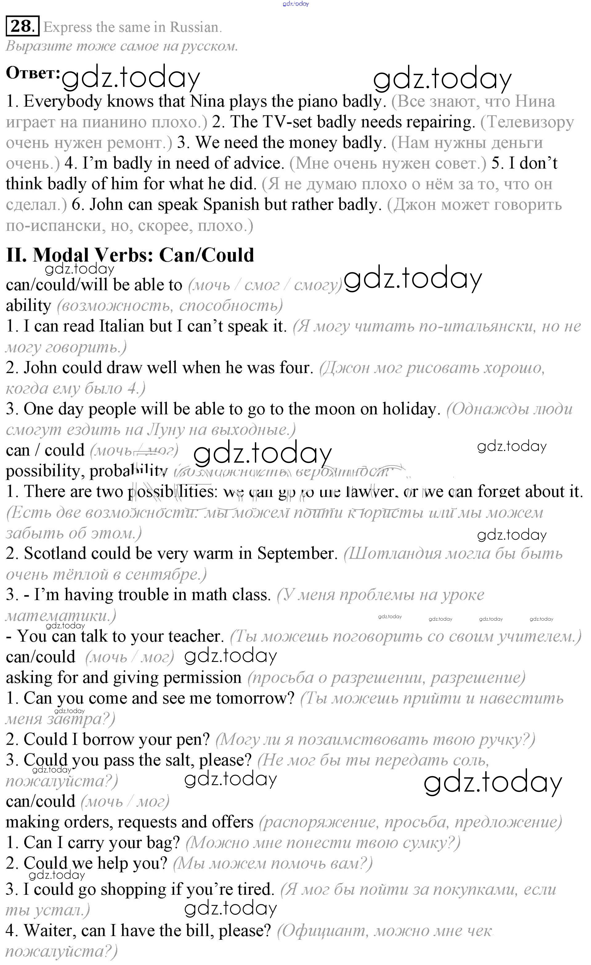 На страницах сайта gdz.today вы найдете учебный и вспомогательный материал, направленный на улучшения знаний школьной программы. ГДЗ - онлайн мир знаний Решение к Unit 3 28 Учебнику по Английскому языку для 8 класса Афанасьева, Михеева Углубленный уровень Просвещение 2014