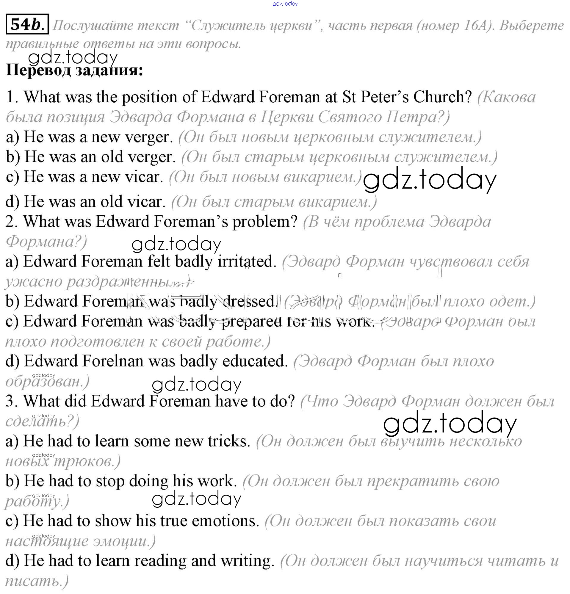 На страницах сайта gdz.today вы найдете учебный и вспомогательный материал, направленный на улучшения знаний школьной программы. ГДЗ - онлайн мир знаний Решение к Unit 3 54b Учебнику по Английскому языку для 8 класса Афанасьева, Михеева Углубленный уровень Просвещение 2014