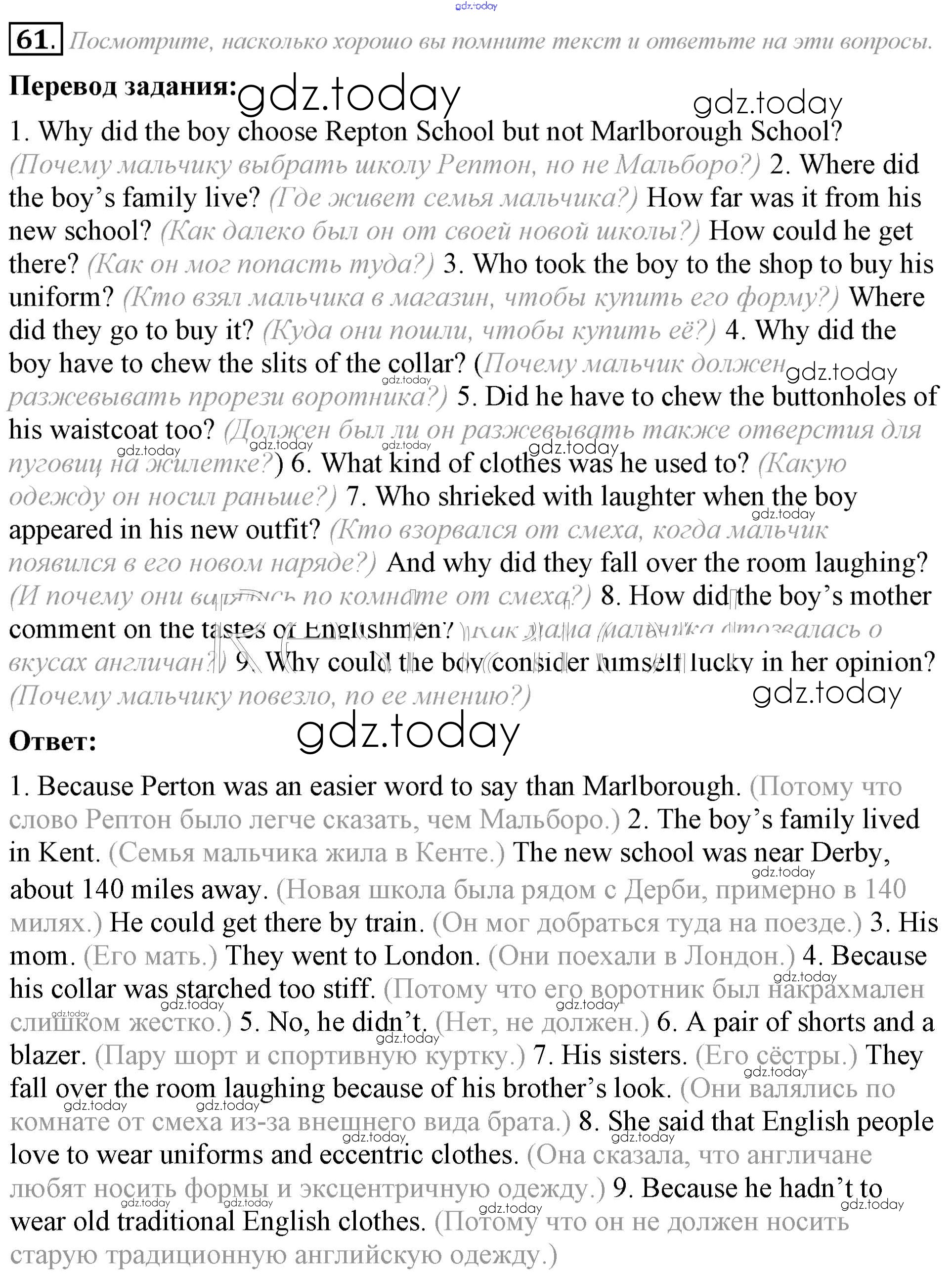 На страницах сайта gdz.today вы найдете учебный и вспомогательный материал, направленный на улучшения знаний школьной программы. ГДЗ - онлайн мир знаний Решение к Unit 3 61 Учебнику по Английскому языку для 8 класса Афанасьева, Михеева Углубленный уровень Просвещение 2014