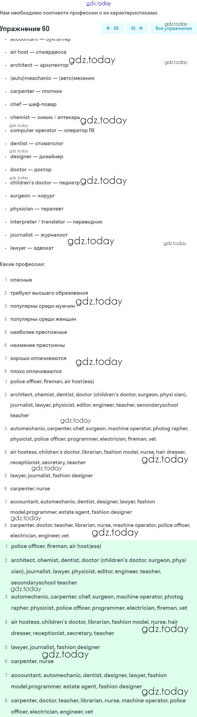 На страницах сайта gdz.today вы найдете учебный и вспомогательный материал, направленный на улучшения знаний школьной программы. ГДЗ - онлайн мир знаний Решение. Unit 1. Choosing a Career: the World of Jobs 60 Учебнику по Английскому языку для 8 класса Афанасьева, Михеева Углубленный уровень Просвещение 2014