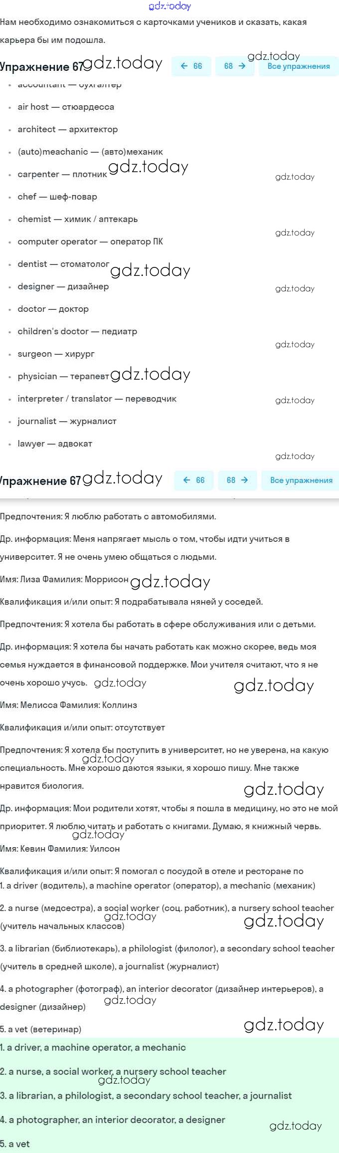 На страницах сайта gdz.today вы найдете учебный и вспомогательный материал, направленный на улучшения знаний школьной программы. ГДЗ - онлайн мир знаний Решение. Unit 1. Choosing a Career: the World of Jobs 67 Учебнику по Английскому языку для 8 класса Афанасьева, Михеева Углубленный уровень Просвещение 2014