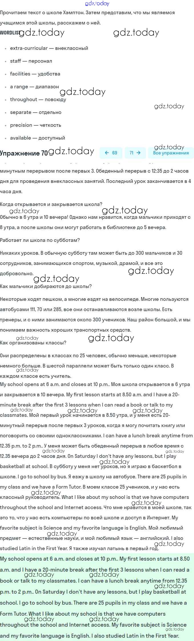 На страницах сайта gdz.today вы найдете учебный и вспомогательный материал, направленный на улучшения знаний школьной программы. ГДЗ - онлайн мир знаний Решение. Unit 2. Education: The World of Learning 70 Учебнику по Английскому языку для 8 класса Афанасьева, Михеева Углубленный уровень Просвещение 2014