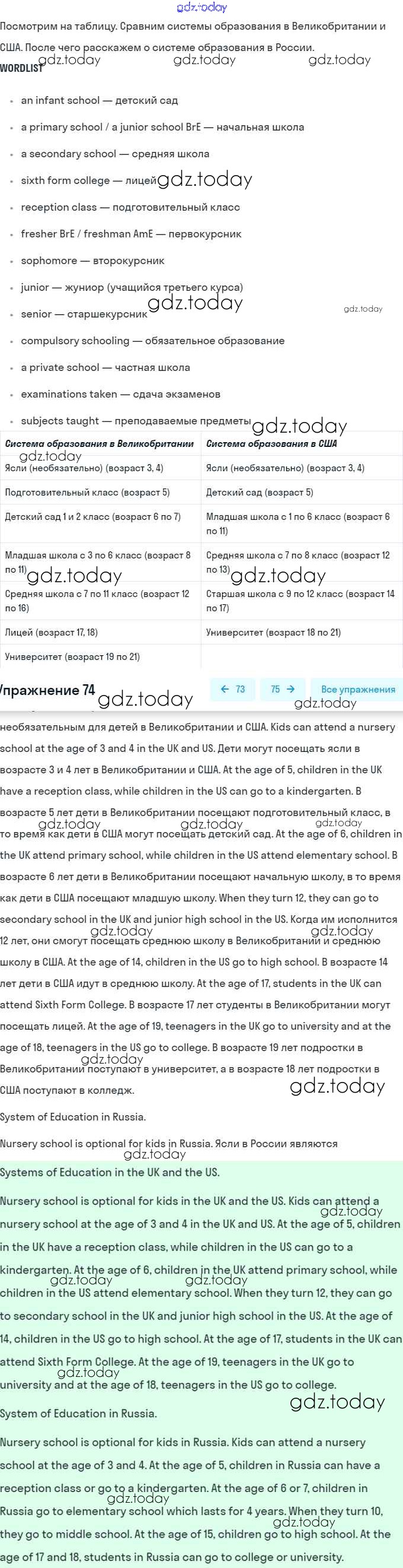На страницах сайта gdz.today вы найдете учебный и вспомогательный материал, направленный на улучшения знаний школьной программы. ГДЗ - онлайн мир знаний Решение. Unit 2. Education: The World of Learning 74 Учебнику по Английскому языку для 8 класса Афанасьева, Михеева Углубленный уровень Просвещение 2014