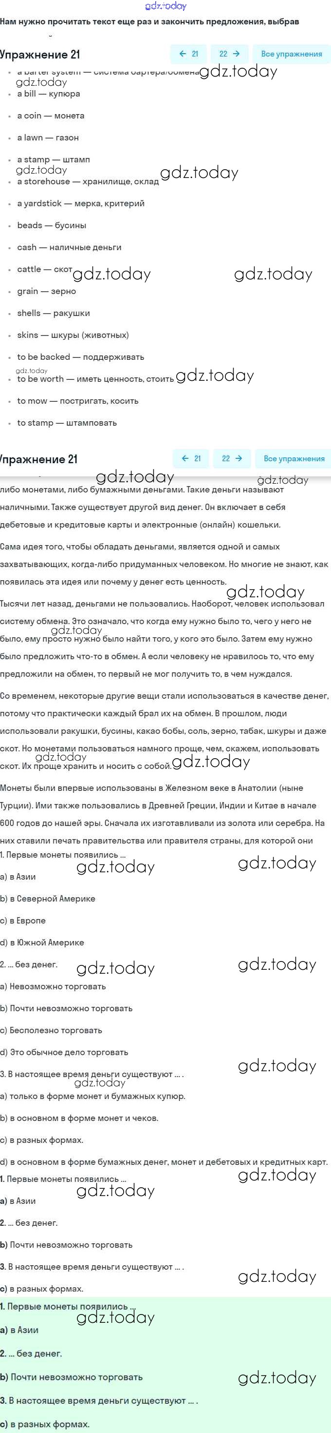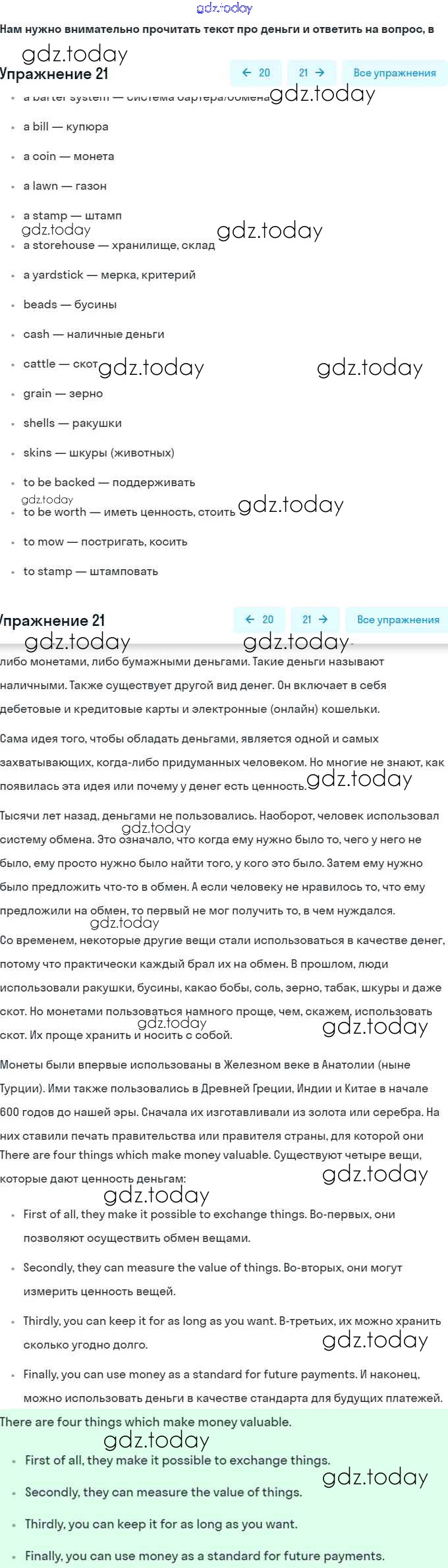 На страницах сайта gdz.today вы найдете учебный и вспомогательный материал, направленный на улучшения знаний школьной программы. ГДЗ - онлайн мир знаний Решение. Unit 3. Shopping: The World of Money 21 Учебнику по Английскому языку для 8 класса Афанасьева, Михеева Углубленный уровень Просвещение 2014