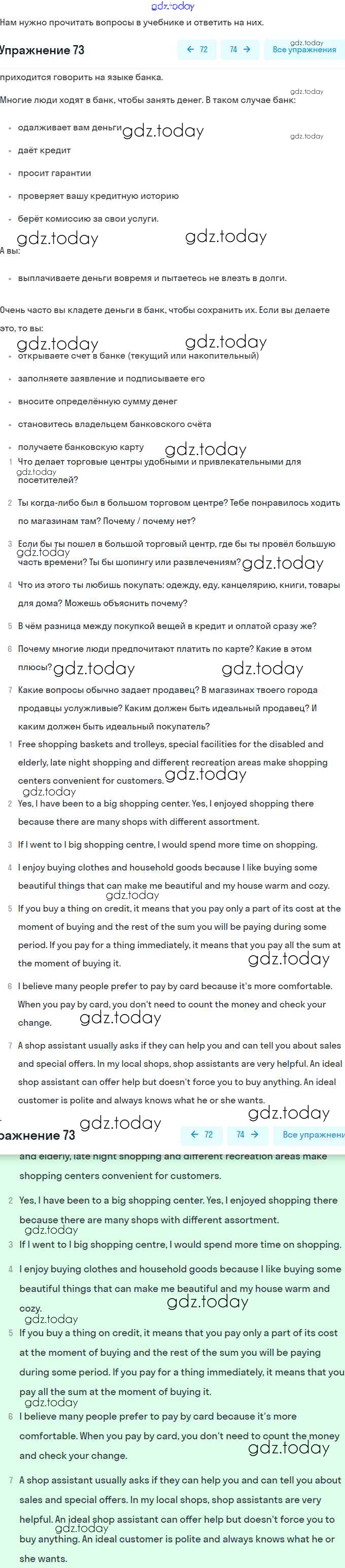 На страницах сайта gdz.today вы найдете учебный и вспомогательный материал, направленный на улучшения знаний школьной программы. ГДЗ - онлайн мир знаний Решение. Unit 3. Shopping: The World of Money 73 Учебнику по Английскому языку для 8 класса Афанасьева, Михеева Углубленный уровень Просвещение 2014