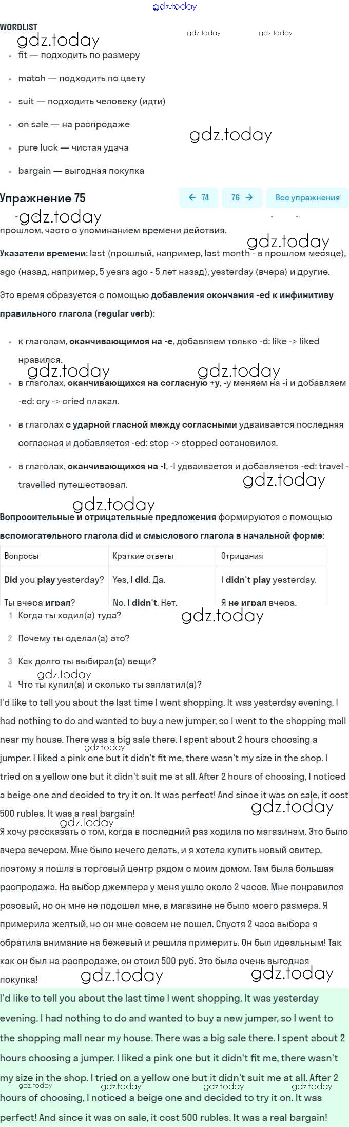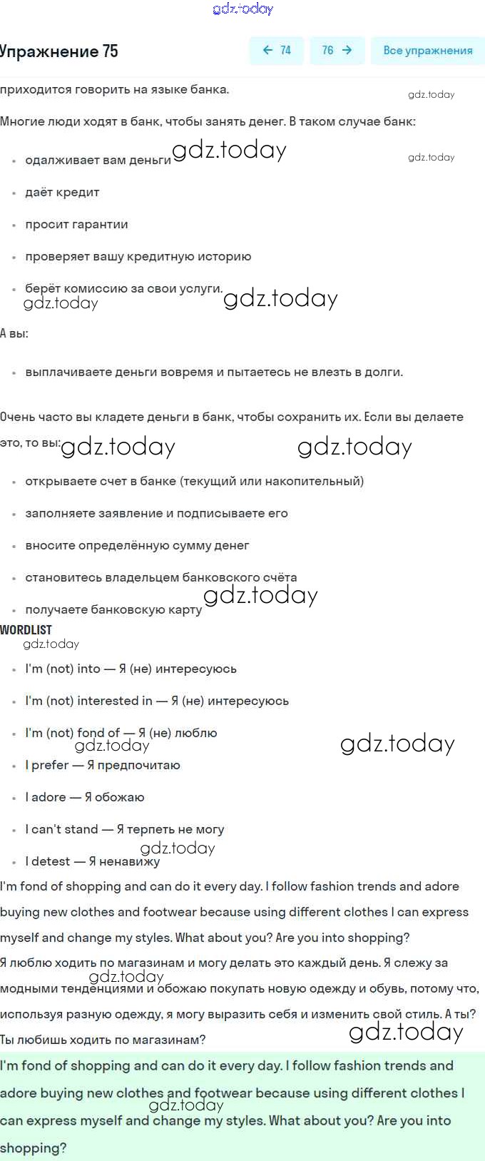 На страницах сайта gdz.today вы найдете учебный и вспомогательный материал, направленный на улучшения знаний школьной программы. ГДЗ - онлайн мир знаний Решение. Unit 3. Shopping: The World of Money 75 Учебнику по Английскому языку для 8 класса Афанасьева, Михеева Углубленный уровень Просвещение 2014