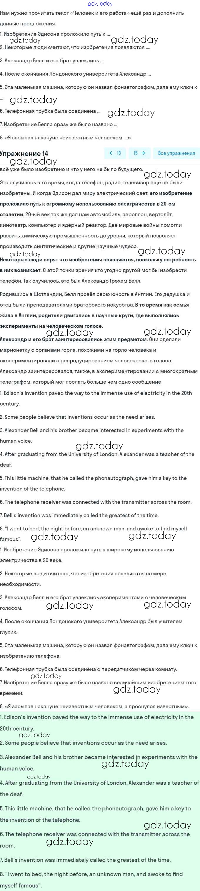 На страницах сайта gdz.today вы найдете учебный и вспомогательный материал, направленный на улучшения знаний школьной программы. ГДЗ - онлайн мир знаний Решение. Unit 4. Fascination and Challenge: The World of Science and Technology 14 Учебнику по Английскому языку для 8 класса Афанасьева, Михеева Углубленный уровень Просвещение 2014