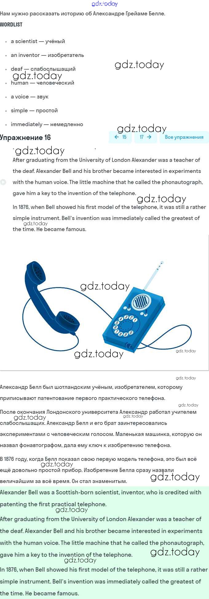 На страницах сайта gdz.today вы найдете учебный и вспомогательный материал, направленный на улучшения знаний школьной программы. ГДЗ - онлайн мир знаний Решение. Unit 4. Fascination and Challenge: The World of Science and Technology 16 Учебнику по Английскому языку для 8 класса Афанасьева, Михеева Углубленный уровень Просвещение 2014