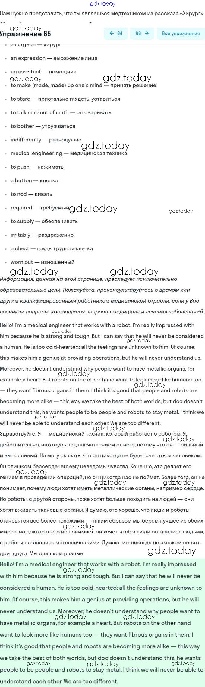На страницах сайта gdz.today вы найдете учебный и вспомогательный материал, направленный на улучшения знаний школьной программы. ГДЗ - онлайн мир знаний Решение. Unit 4. Fascination and Challenge: The World of Science and Technology 65 Учебнику по Английскому языку для 8 класса Афанасьева, Михеева Углубленный уровень Просвещение 2014