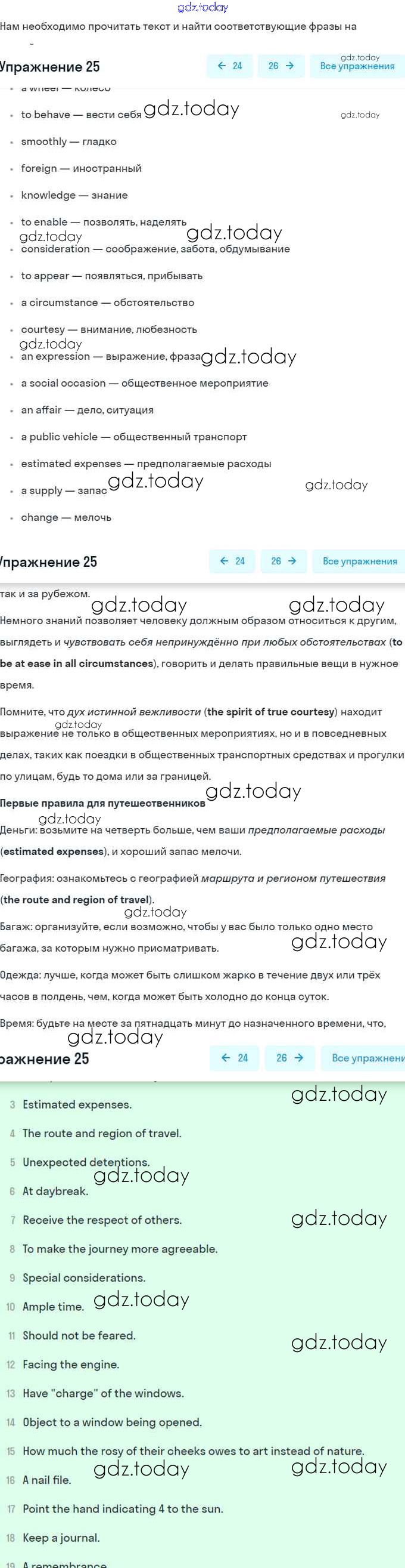 На страницах сайта gdz.today вы найдете учебный и вспомогательный материал, направленный на улучшения знаний школьной программы. ГДЗ - онлайн мир знаний Решение. Unit 5. Going to Places: The World of Travelling 25 Учебнику по Английскому языку для 8 класса Афанасьева, Михеева Углубленный уровень Просвещение 2014