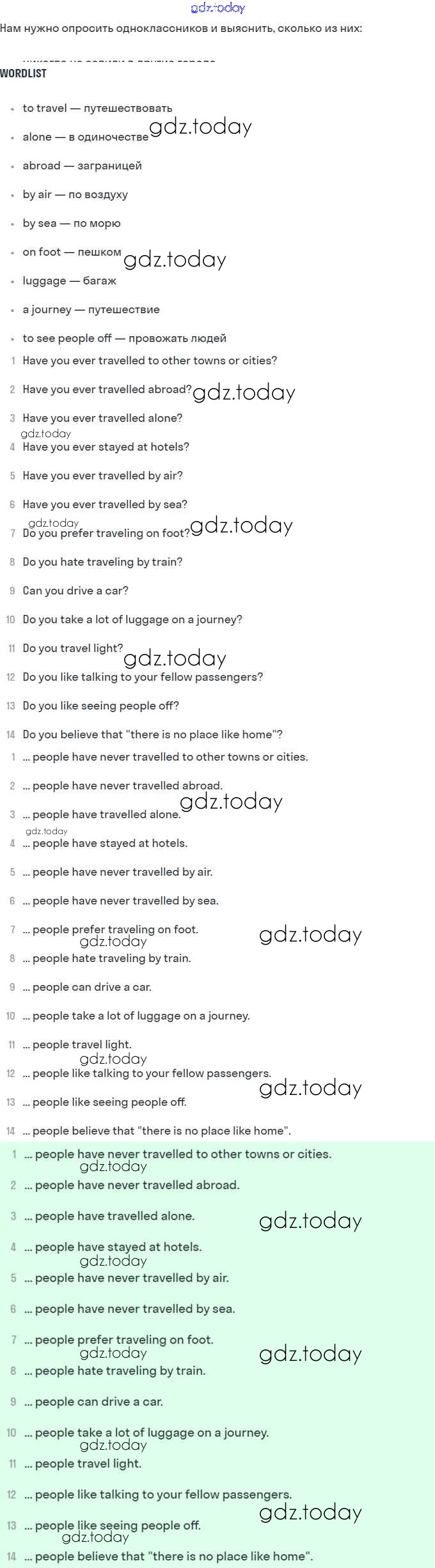 На страницах сайта gdz.today вы найдете учебный и вспомогательный материал, направленный на улучшения знаний школьной программы. ГДЗ - онлайн мир знаний Решение. Unit 5. Going to Places: The World of Travelling 3 Учебнику по Английскому языку для 8 класса Афанасьева, Михеева Углубленный уровень Просвещение 2014