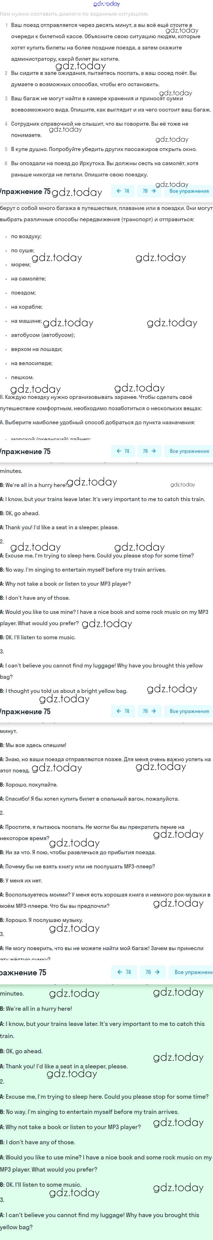 На страницах сайта gdz.today вы найдете учебный и вспомогательный материал, направленный на улучшения знаний школьной программы. ГДЗ - онлайн мир знаний Решение. Unit 5. Going to Places: The World of Travelling 75 Учебнику по Английскому языку для 8 класса Афанасьева, Михеева Углубленный уровень Просвещение 2014