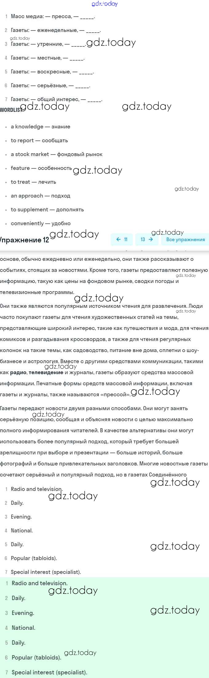На страницах сайта gdz.today вы найдете учебный и вспомогательный материал, направленный на улучшения знаний школьной программы. ГДЗ - онлайн мир знаний Решение. Unit 6. Newspapers and Television: The World of Mass Media 12 Учебнику по Английскому языку для 8 класса Афанасьева, Михеева Углубленный уровень Просвещение 2014