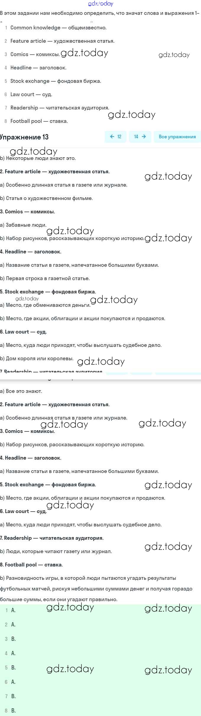 Ответы к Решение. Unit 6. Newspapers and Television: The World of Mass Media 13 Учебнику по Английскому языку для 8 класса Афанасьева, Михеева Углубленный уровень Просвещение 2014