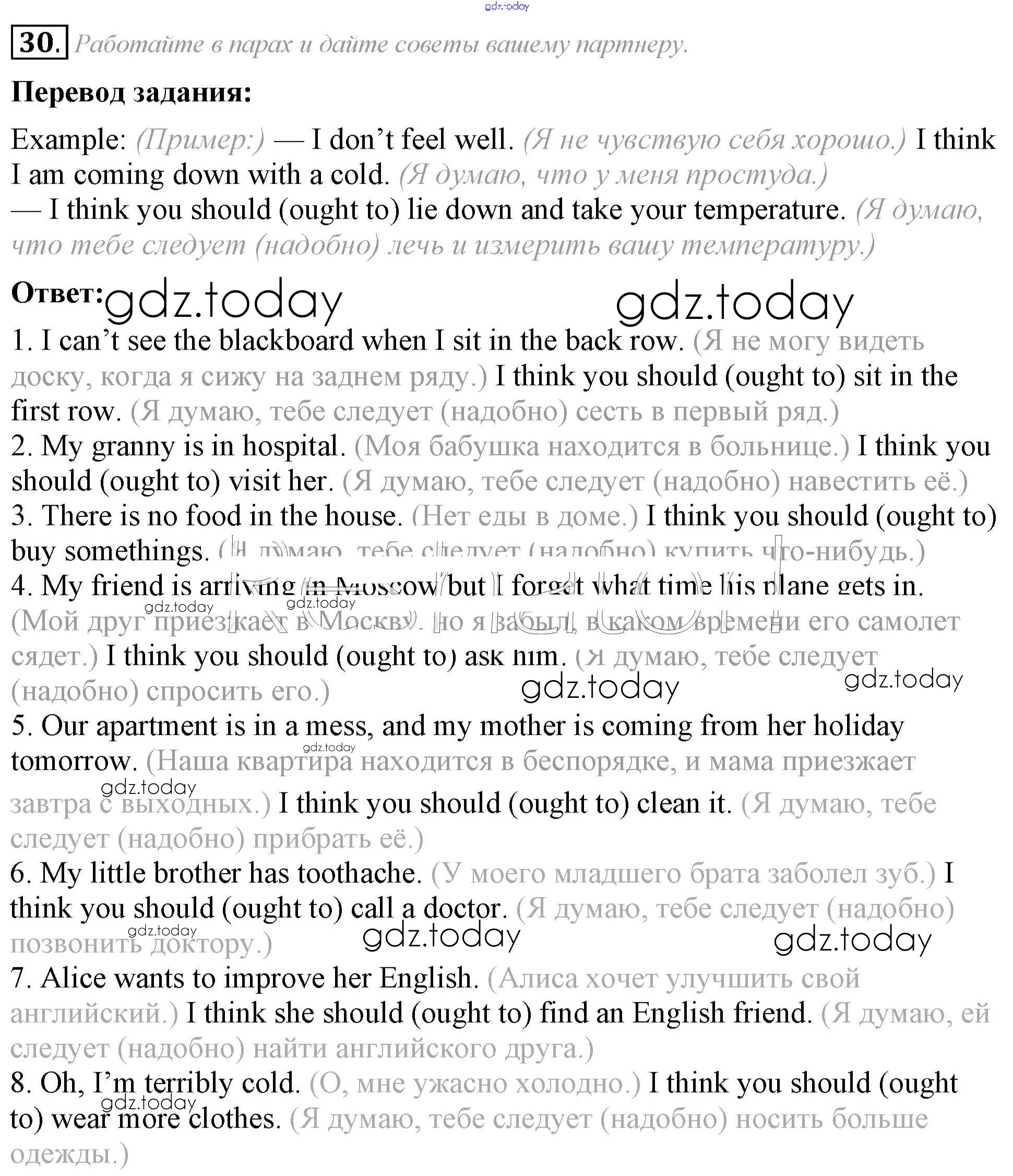 На страницах сайта gdz.today вы найдете учебный и вспомогательный материал, направленный на улучшения знаний школьной программы. ГДЗ - онлайн мир знаний Решение к Unit 4 30 Учебнику по Английскому языку для 8 класса Афанасьева, Михеева Углубленный уровень Просвещение 2014