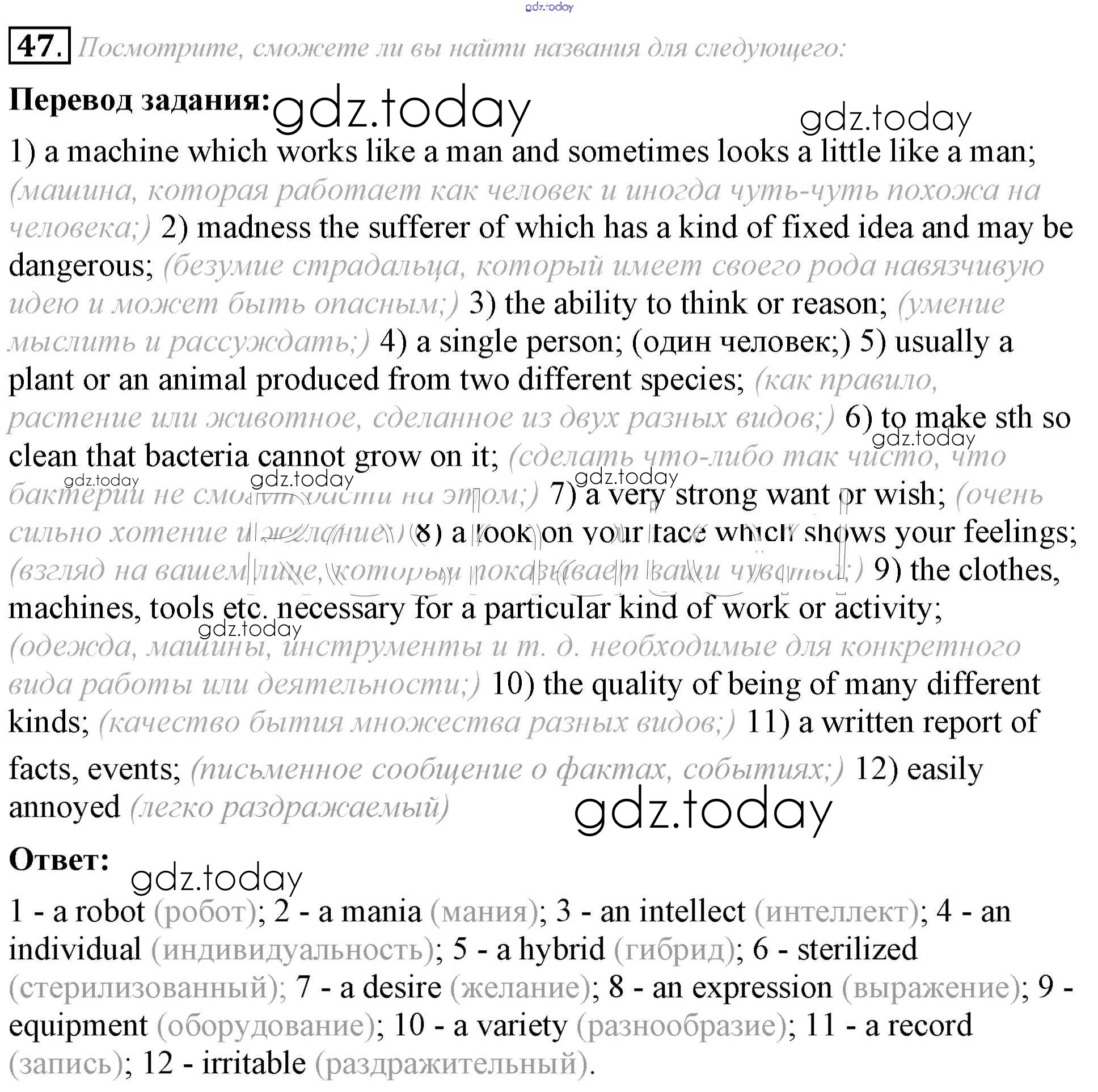 На страницах сайта gdz.today вы найдете учебный и вспомогательный материал, направленный на улучшения знаний школьной программы. ГДЗ - онлайн мир знаний Решение к Unit 4 47 Учебнику по Английскому языку для 8 класса Афанасьева, Михеева Углубленный уровень Просвещение 2014