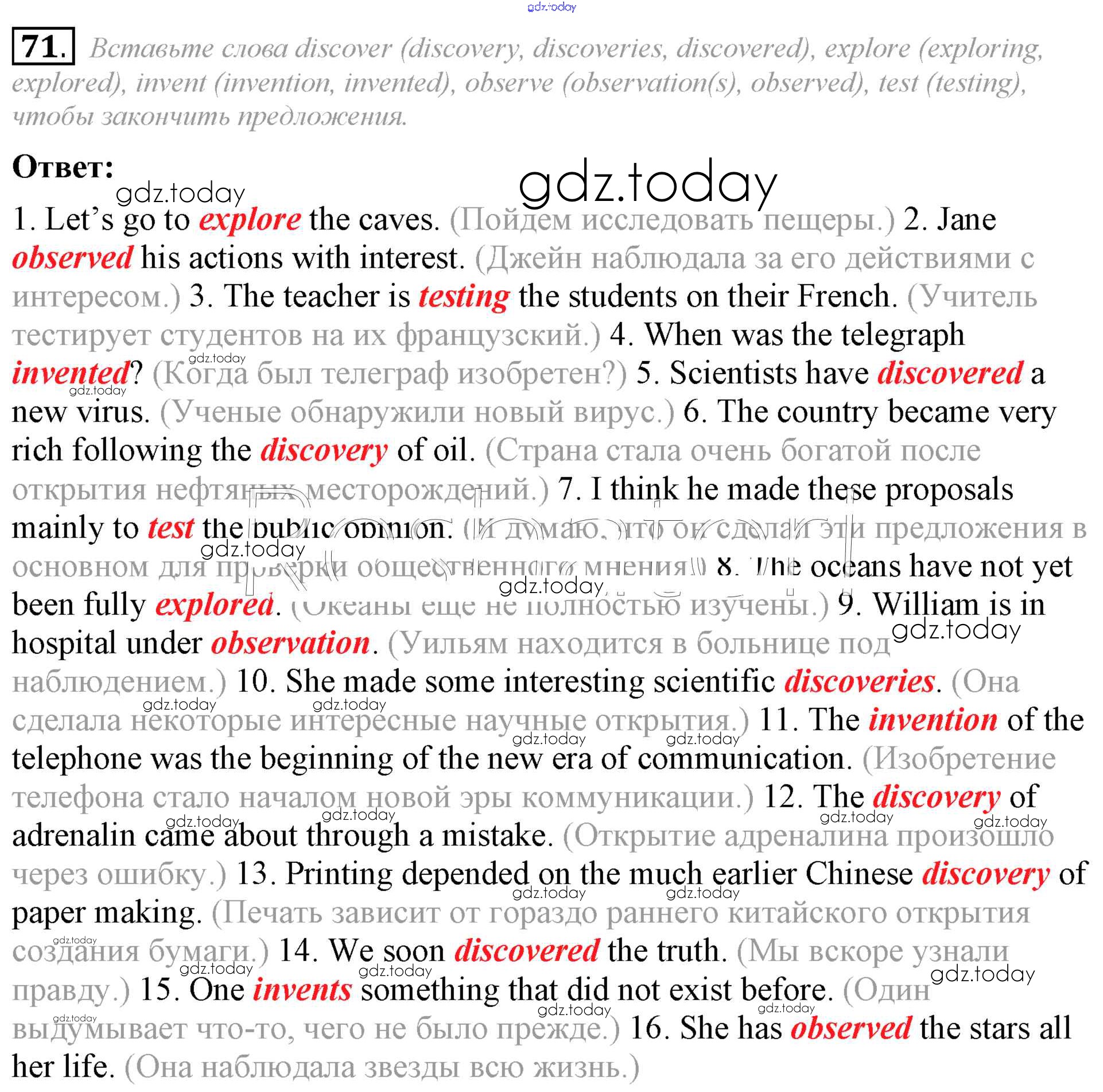 На страницах сайта gdz.today вы найдете учебный и вспомогательный материал, направленный на улучшения знаний школьной программы. ГДЗ - онлайн мир знаний Решение к Unit 4 71 Учебнику по Английскому языку для 8 класса Афанасьева, Михеева Углубленный уровень Просвещение 2014