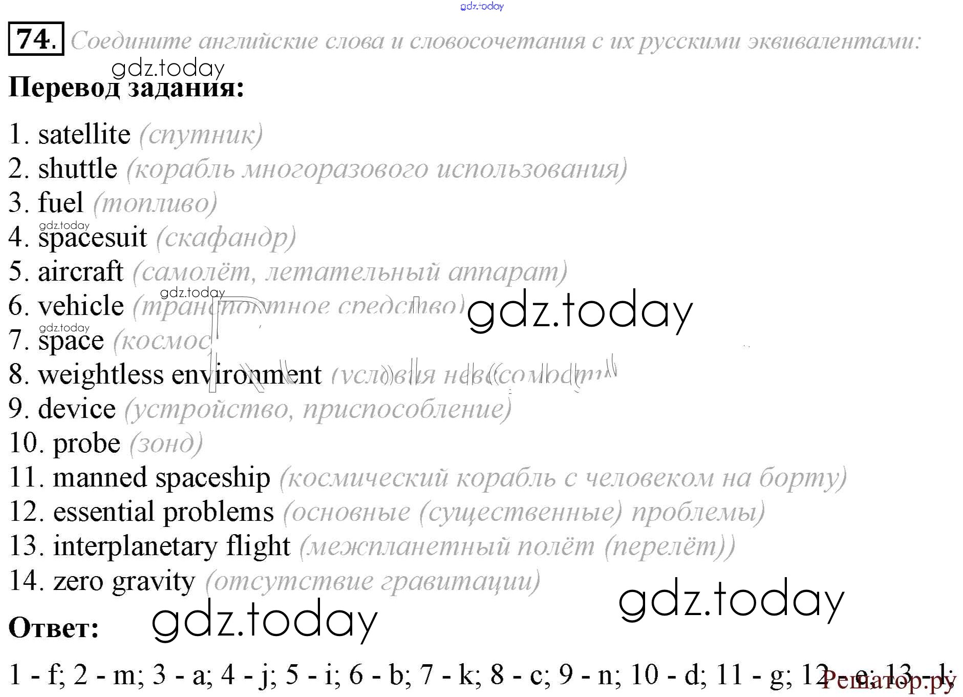 На страницах сайта gdz.today вы найдете учебный и вспомогательный материал, направленный на улучшения знаний школьной программы. ГДЗ - онлайн мир знаний Решение к Unit 4 74 Учебнику по Английскому языку для 8 класса Афанасьева, Михеева Углубленный уровень Просвещение 2014
