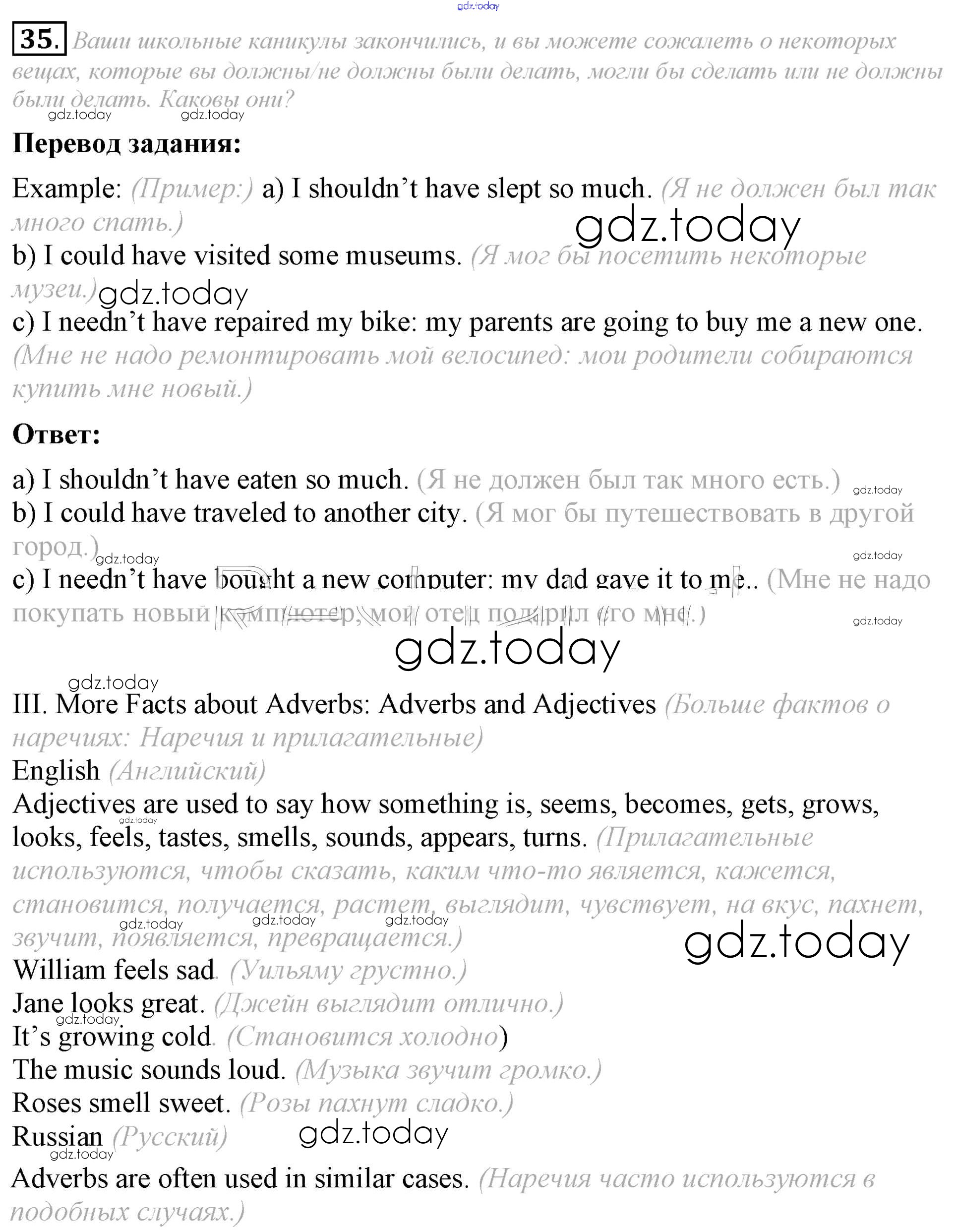 На страницах сайта gdz.today вы найдете учебный и вспомогательный материал, направленный на улучшения знаний школьной программы. ГДЗ - онлайн мир знаний Решение к Unit 5 35 Учебнику по Английскому языку для 8 класса Афанасьева, Михеева Углубленный уровень Просвещение 2014