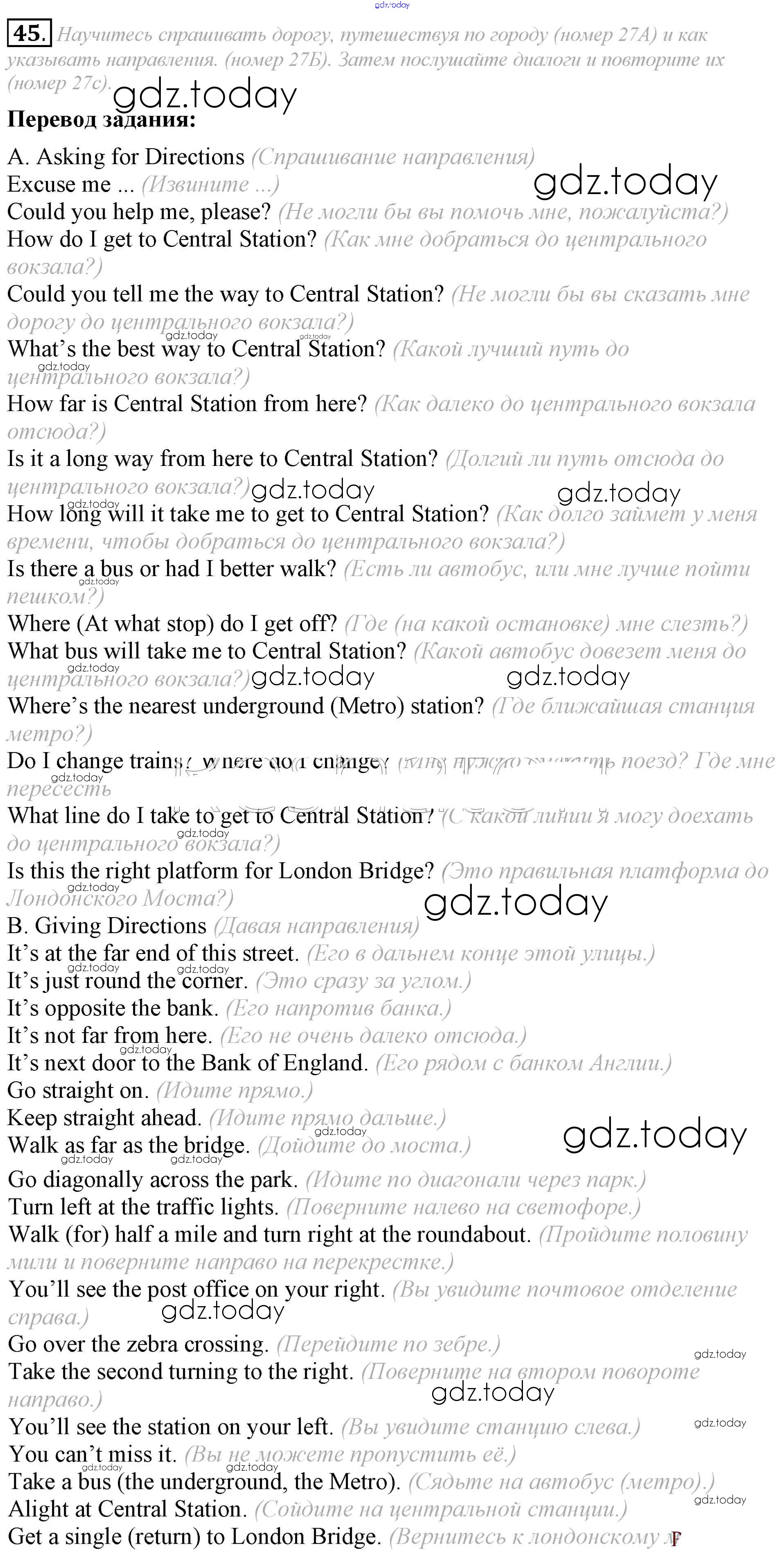 На страницах сайта gdz.today вы найдете учебный и вспомогательный материал, направленный на улучшения знаний школьной программы. ГДЗ - онлайн мир знаний Решение к Unit 5 45 Учебнику по Английскому языку для 8 класса Афанасьева, Михеева Углубленный уровень Просвещение 2014