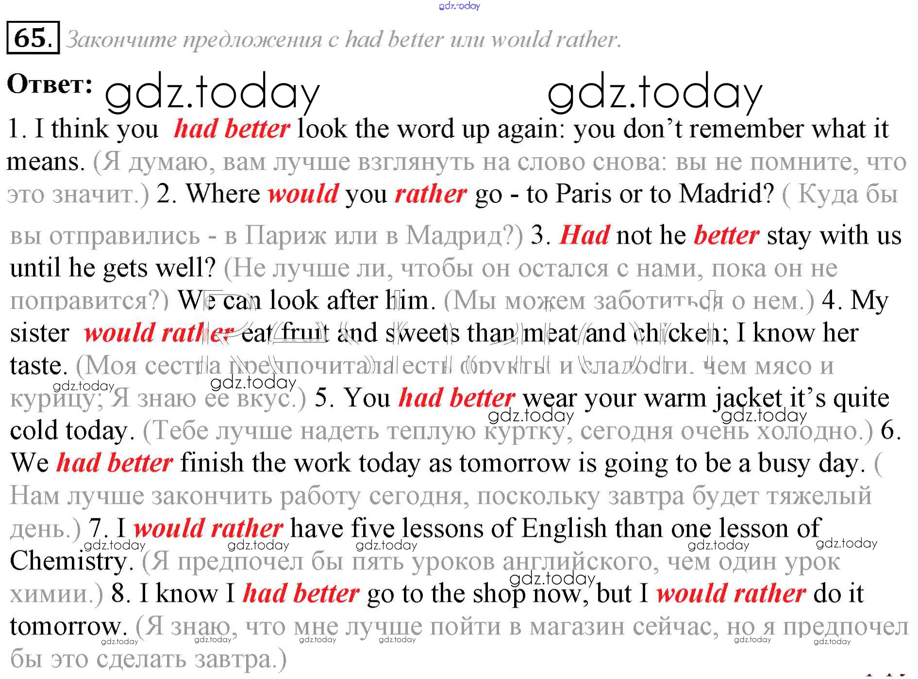 На страницах сайта gdz.today вы найдете учебный и вспомогательный материал, направленный на улучшения знаний школьной программы. ГДЗ - онлайн мир знаний Решение к Unit 5 65 Учебнику по Английскому языку для 8 класса Афанасьева, Михеева Углубленный уровень Просвещение 2014