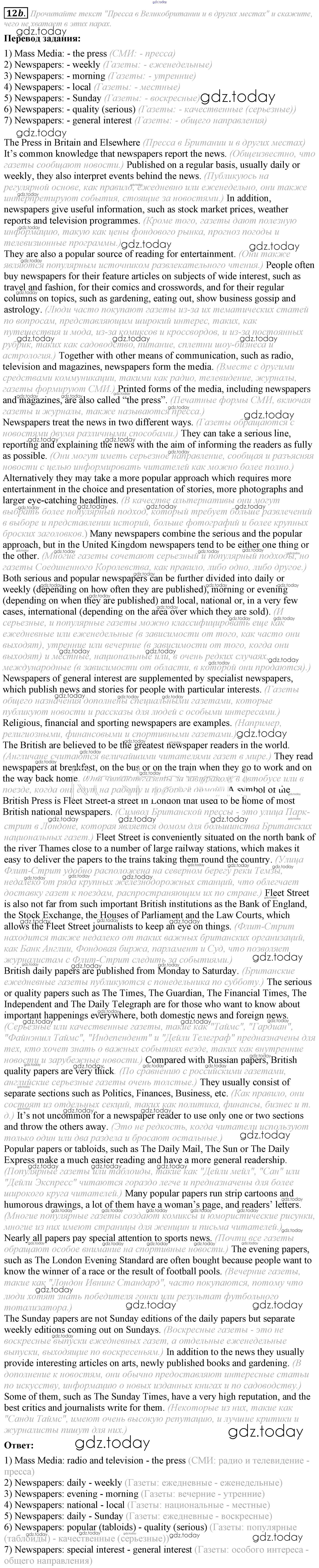 На страницах сайта gdz.today вы найдете учебный и вспомогательный материал, направленный на улучшения знаний школьной программы. ГДЗ - онлайн мир знаний Решение к Unit 6 12b Учебнику по Английскому языку для 8 класса Афанасьева, Михеева Углубленный уровень Просвещение 2014