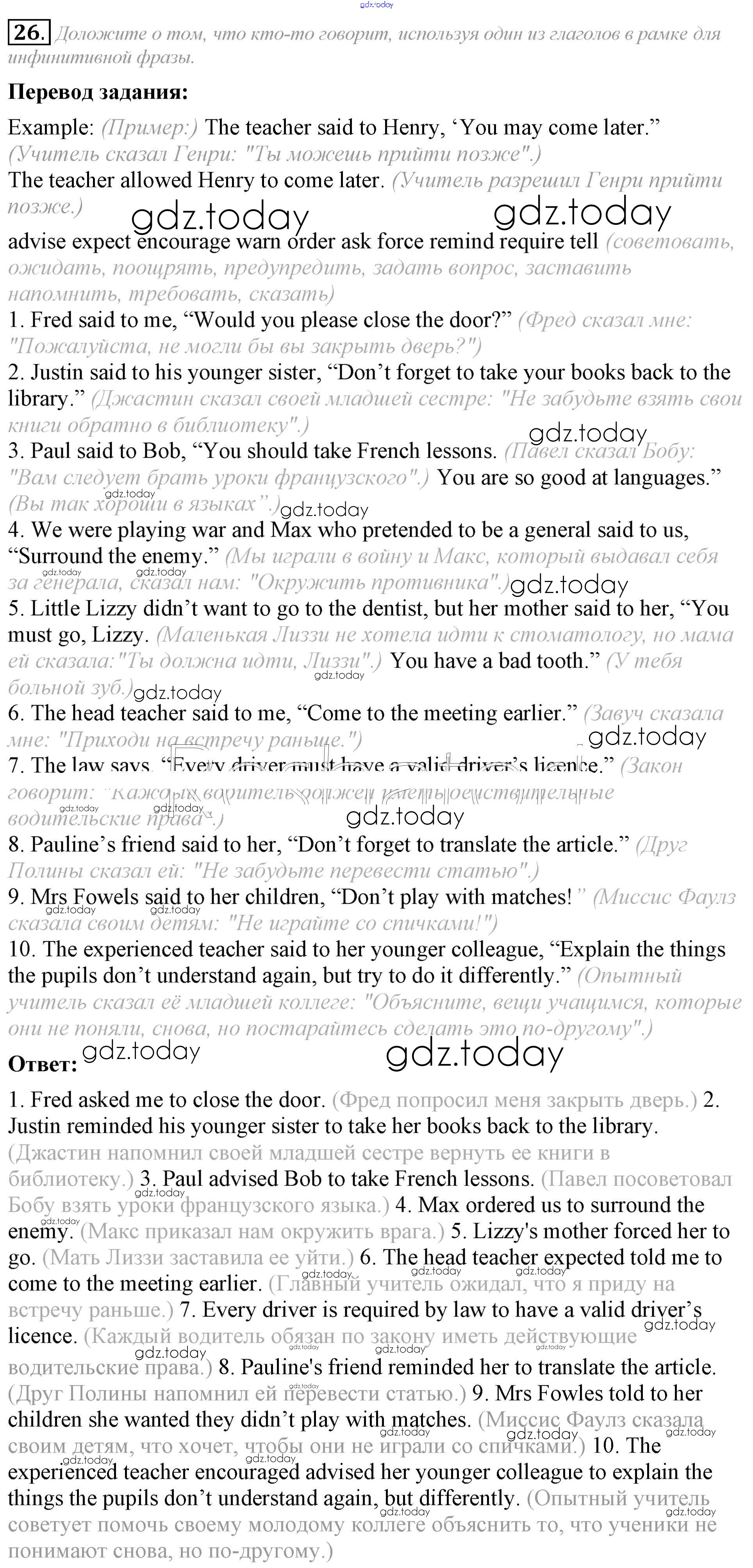 На страницах сайта gdz.today вы найдете учебный и вспомогательный материал, направленный на улучшения знаний школьной программы. ГДЗ - онлайн мир знаний Решение к Unit 6 26 Учебнику по Английскому языку для 8 класса Афанасьева, Михеева Углубленный уровень Просвещение 2014