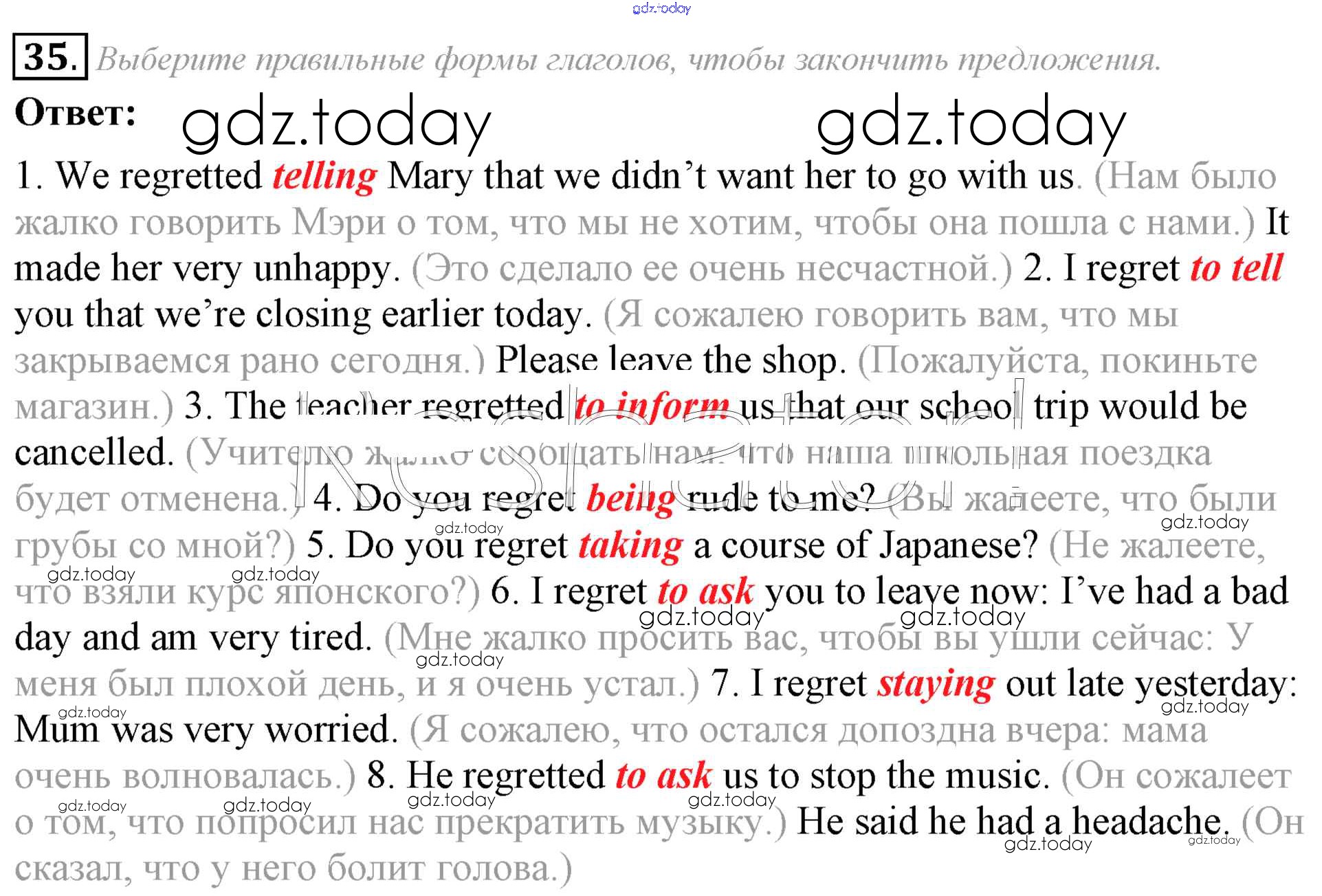 На страницах сайта gdz.today вы найдете учебный и вспомогательный материал, направленный на улучшения знаний школьной программы. ГДЗ - онлайн мир знаний Решение к Unit 6 35 Учебнику по Английскому языку для 8 класса Афанасьева, Михеева Углубленный уровень Просвещение 2014