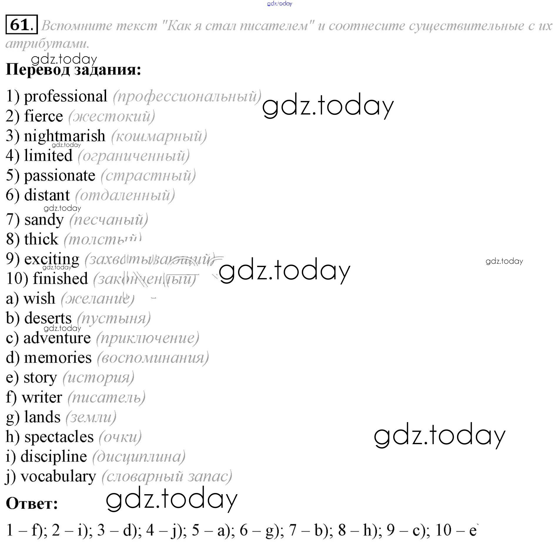 На страницах сайта gdz.today вы найдете учебный и вспомогательный материал, направленный на улучшения знаний школьной программы. ГДЗ - онлайн мир знаний Решение к Unit 6 61 Учебнику по Английскому языку для 8 класса Афанасьева, Михеева Углубленный уровень Просвещение 2014