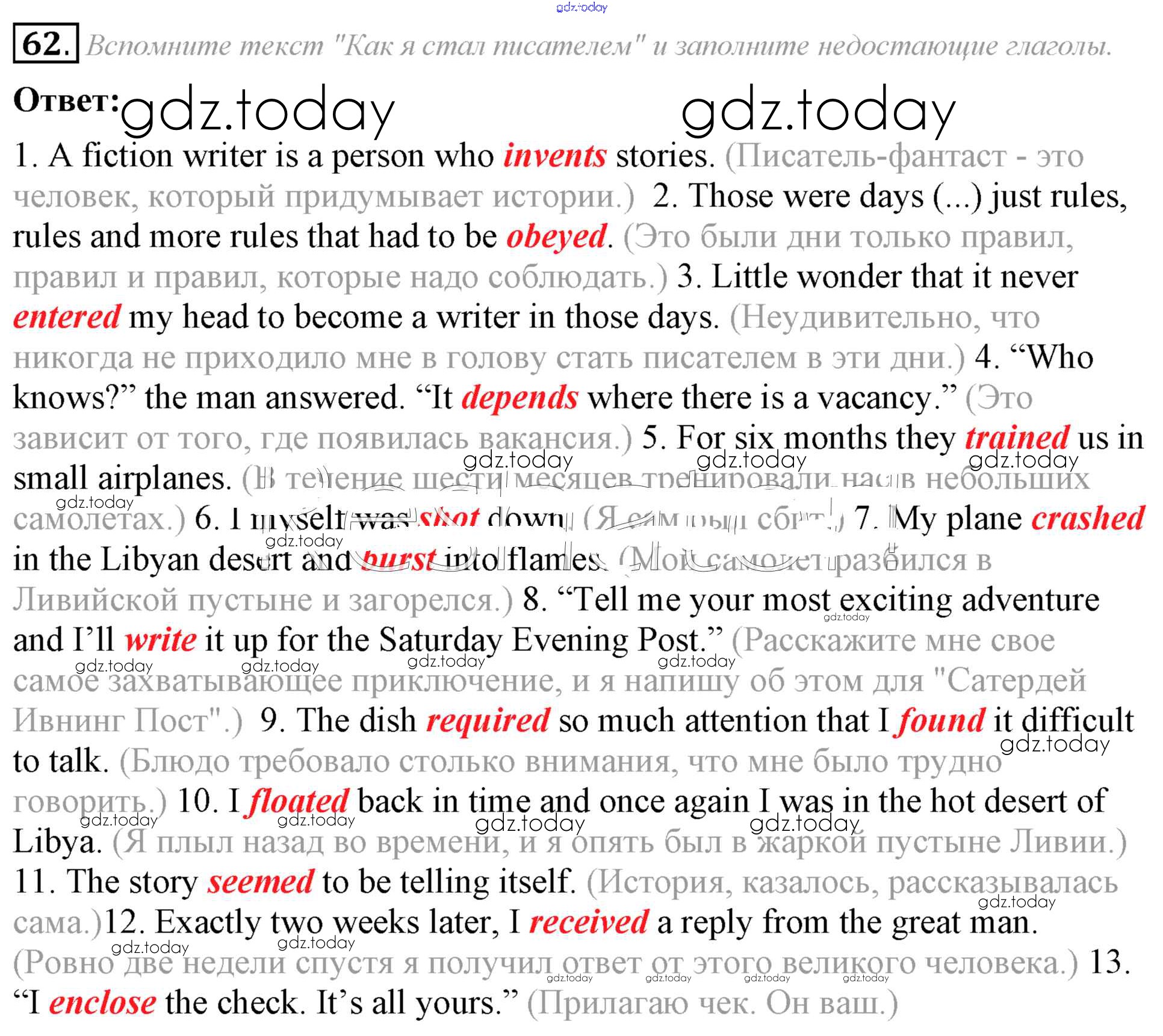 На страницах сайта gdz.today вы найдете учебный и вспомогательный материал, направленный на улучшения знаний школьной программы. ГДЗ - онлайн мир знаний Решение к Unit 6 62 Учебнику по Английскому языку для 8 класса Афанасьева, Михеева Углубленный уровень Просвещение 2014